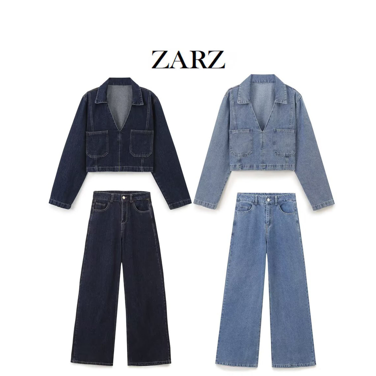 ZARZ 自家製ヨーロッパとアメリカンスタイルの新しい女性のクラシックショートデニムシャツハイウエストワイドレッグジーンズ