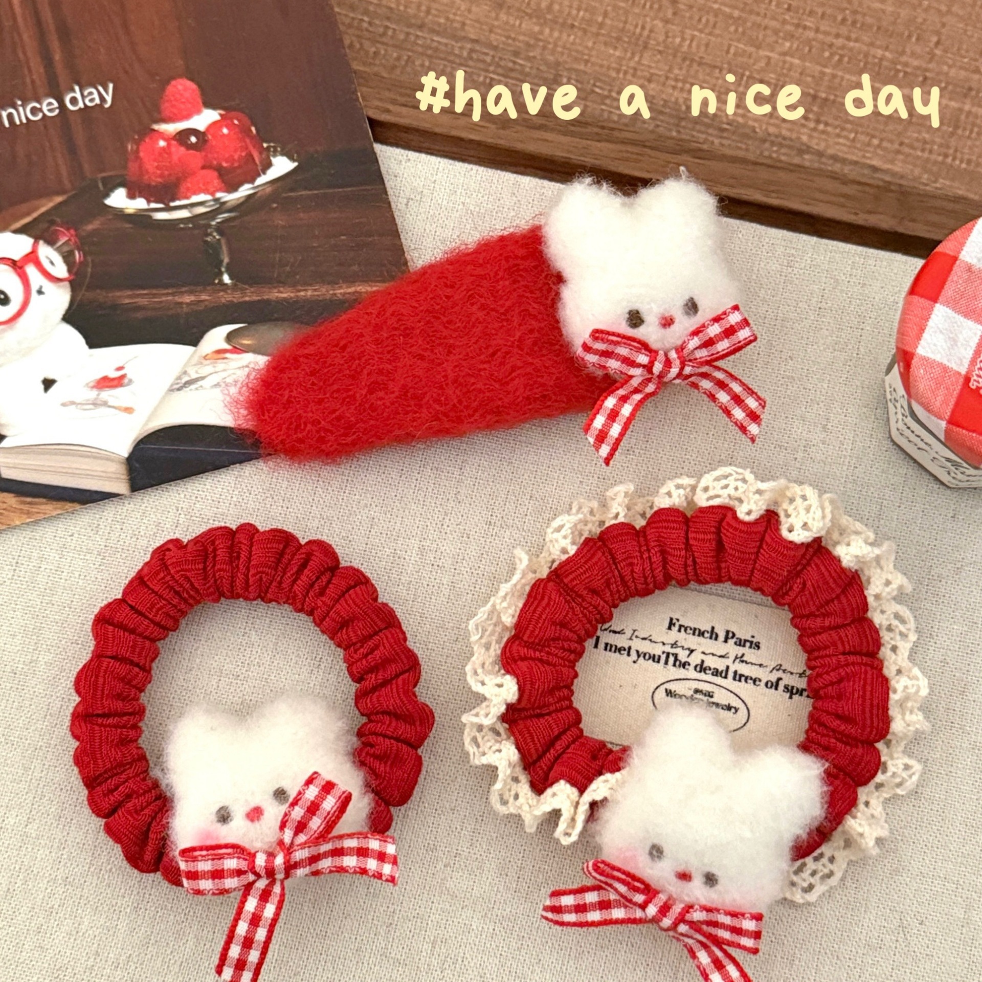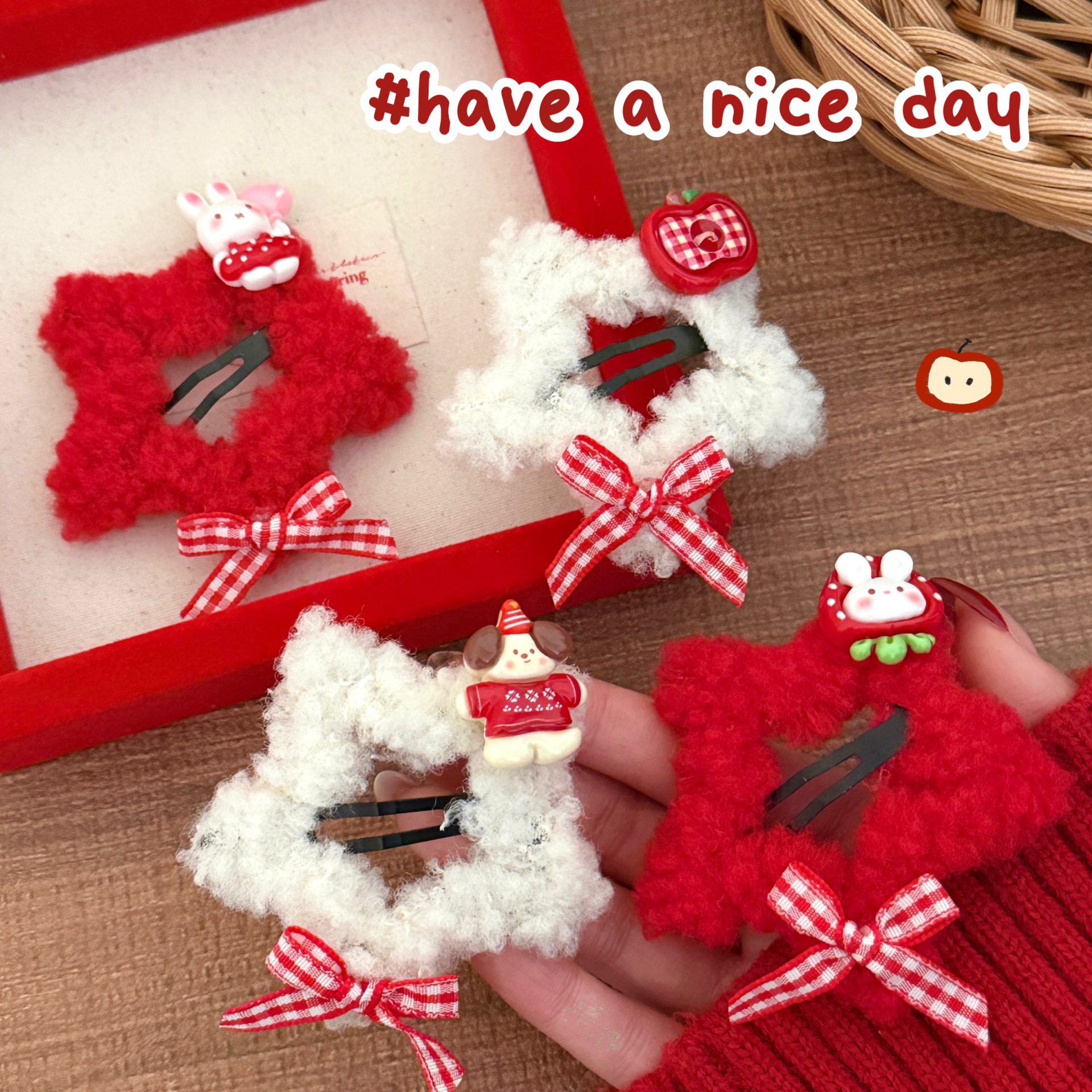 红色系可爱毛毡公仔发饰少女心百搭刘海BB夹气质马尾发圈发饰批发