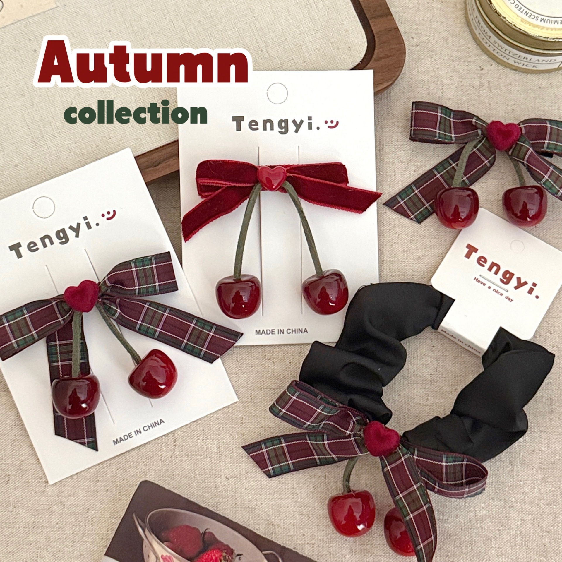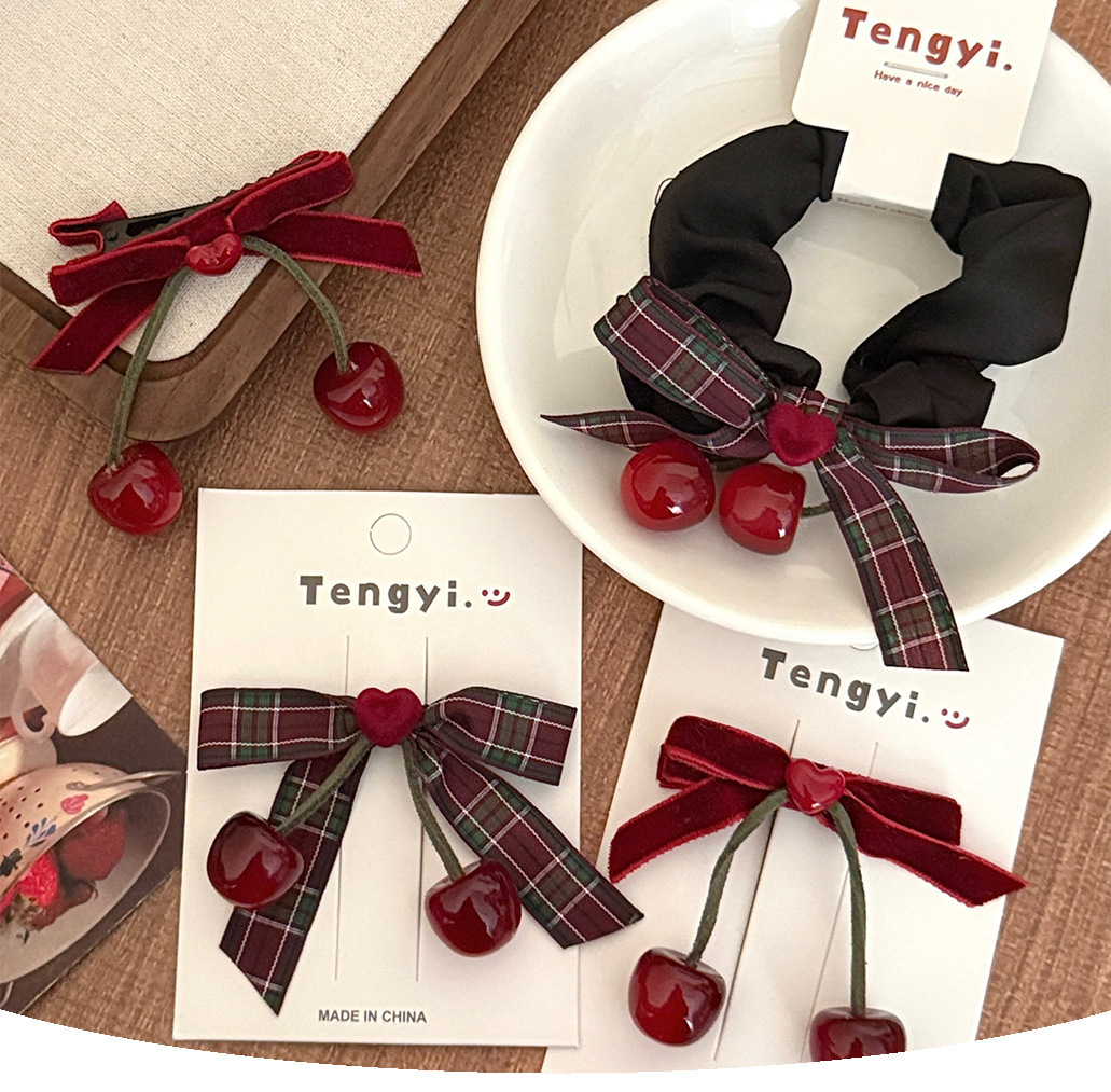 秋冬季氛围感樱桃发夹发圈少女甜美百搭刘海夹边夹扎马尾发绳发饰