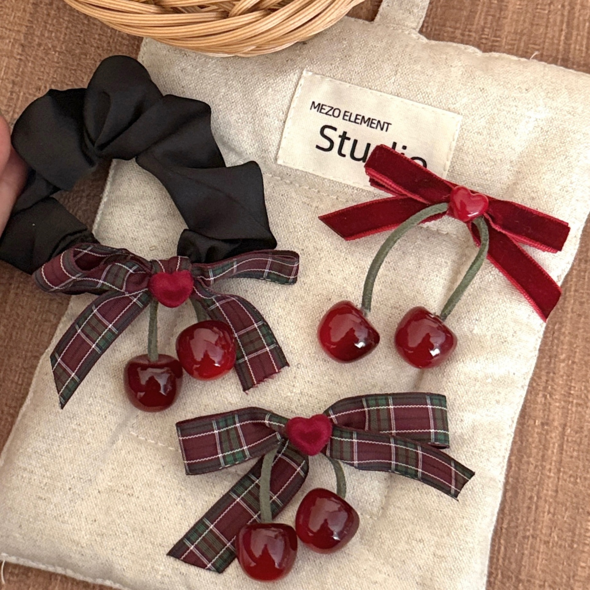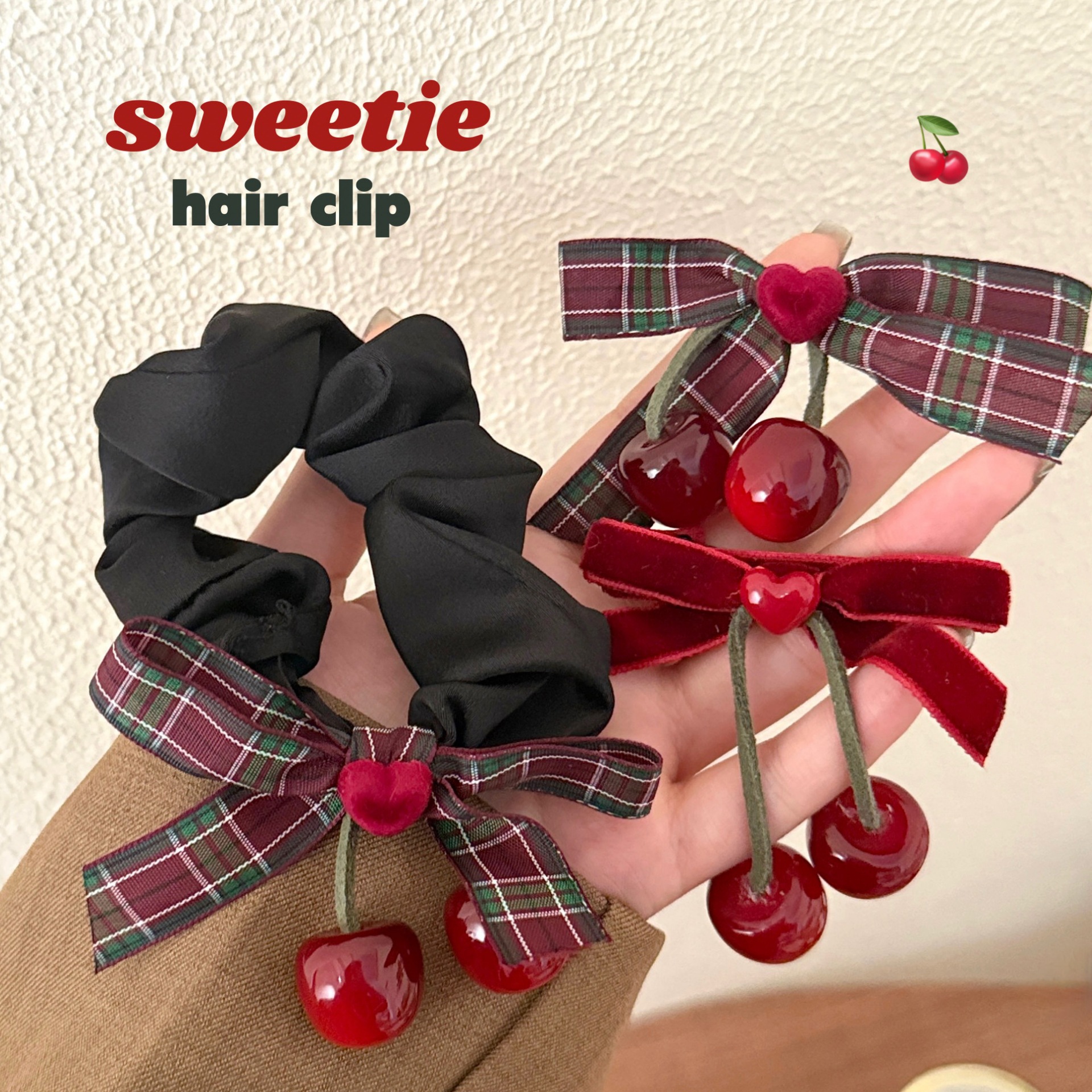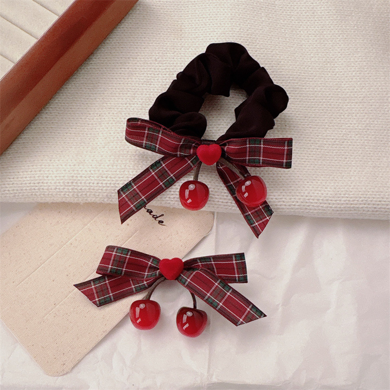 高级感爱心樱桃大肠发圈少女甜美蝴蝶结刘海夹皮筋扎马尾发绳头饰
