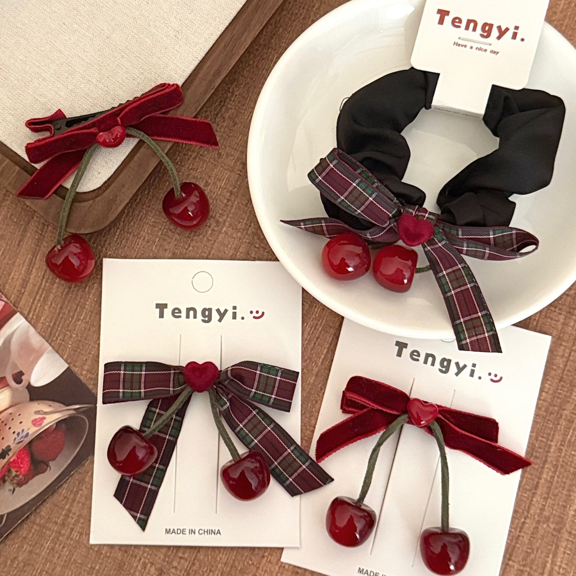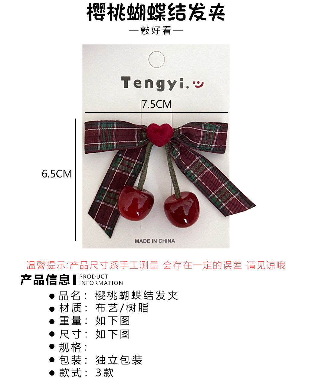 颜色 2#红色格纹蝴蝶结樱桃发夹,3#红色格纹蝴蝶结樱桃发圈,1#黑白格纹蝴蝶结樱桃发夹,2#红白格纹蝴蝶结樱桃发夹,3#粉白格纹蝴蝶结樱桃发夹,4#蝴蝶结樱桃发夹,1#樱桃发绳