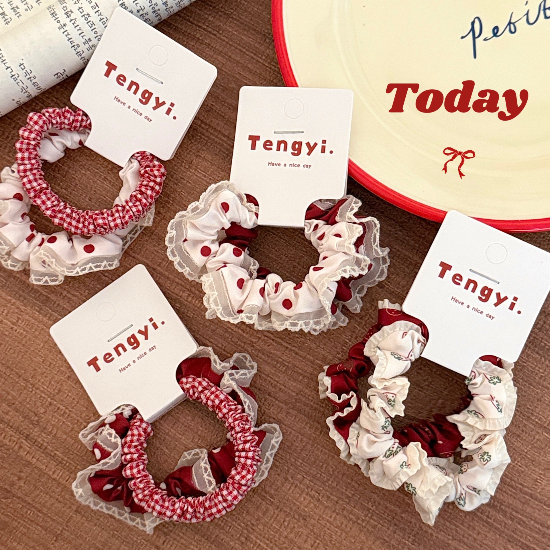 新しい韓国風チェック柄レースヘアロープセット、ガーリーで甘い水玉模様のヘアゴム、シンプルで多用途、髪を傷つけないヘアアクセサリー
