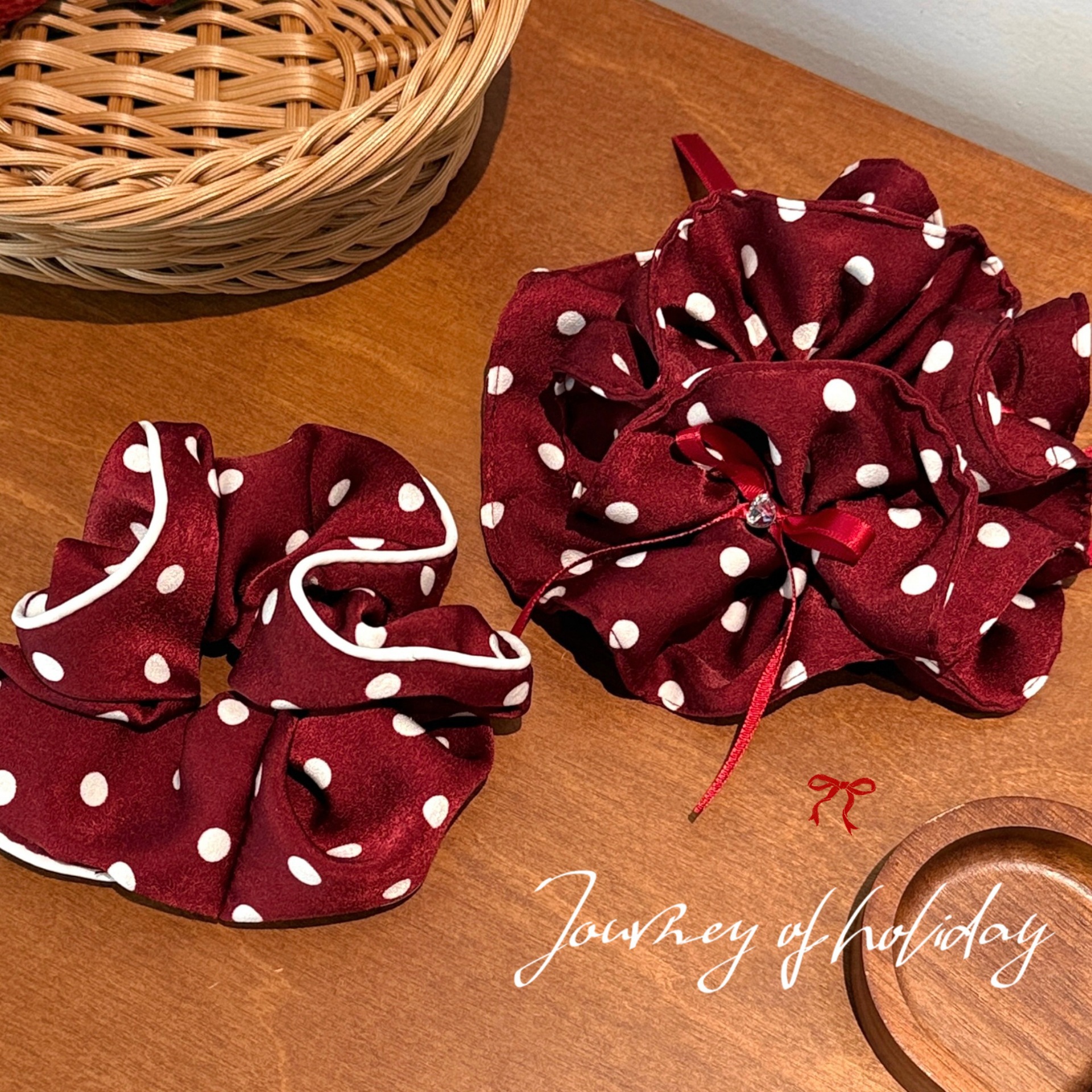 红色系波点双层褶皱发圈少女高马尾大肠发圈扎丸子头皮筋头饰批发