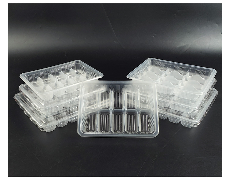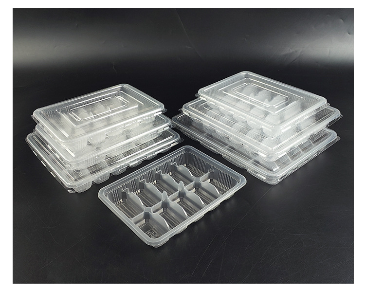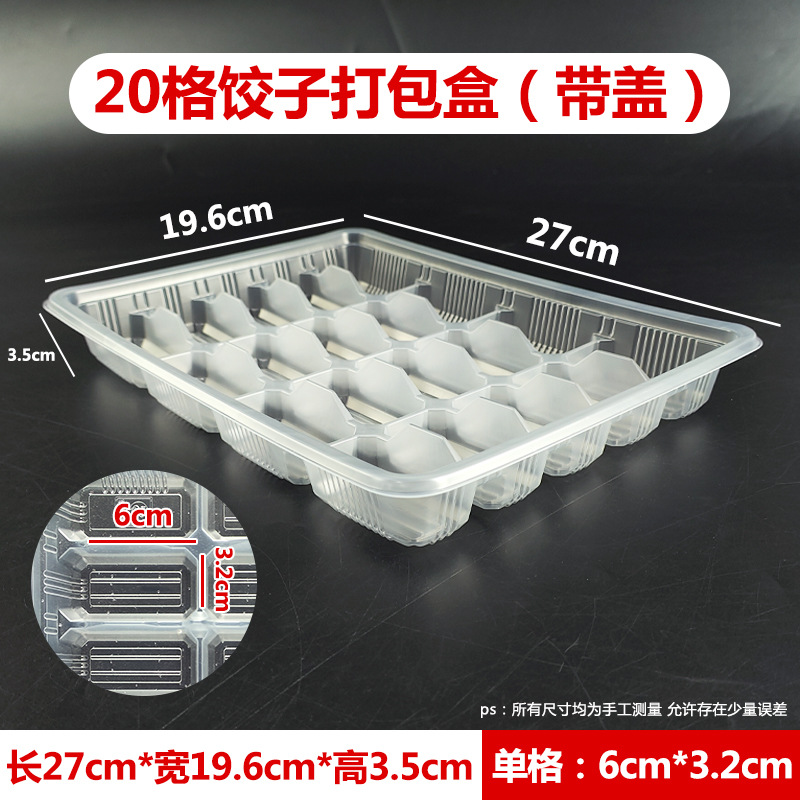 使い捨てギョーザの箱は蓋付きの透明なプラスチックの弁当箱を厚くして、急凍水ギョーザの箱を外に出して包装します。
