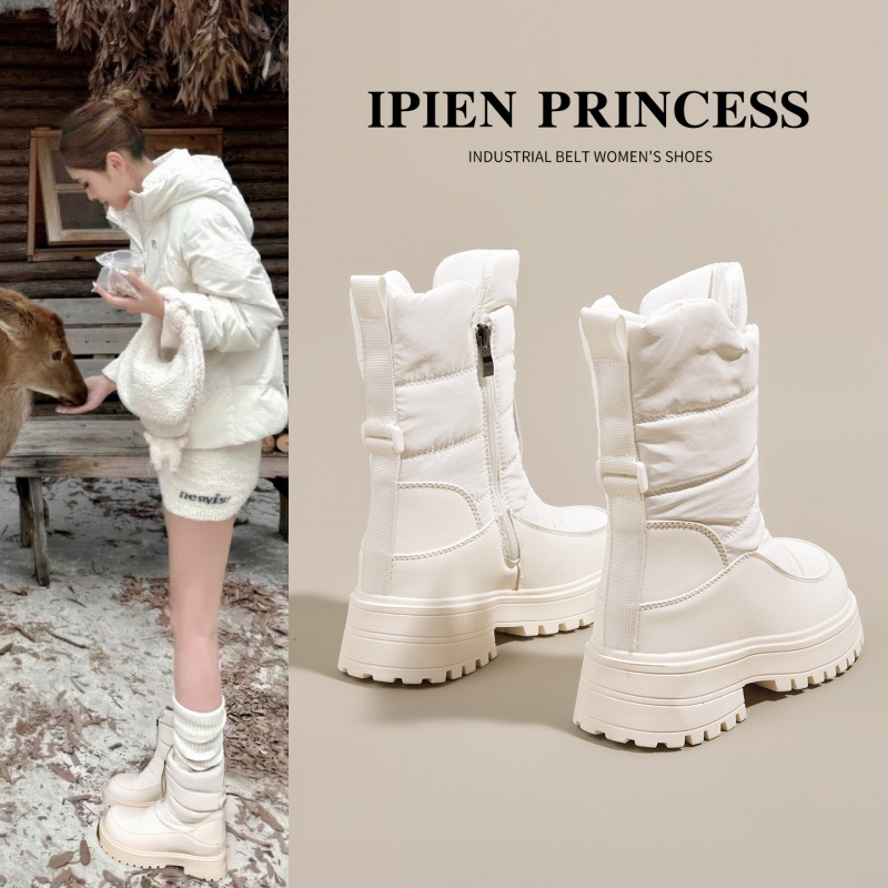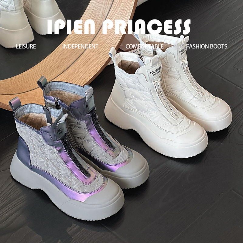 2025年冬新作、厚底で暖かい裏起毛スノーブーツ、万能な厚底コットンシューズ、人気のショートブーツ
