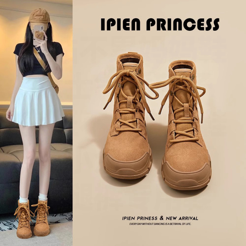 ネット紅馬丁靴2025新型アウトドア徒歩登山靴旅行砂漠靴春秋厚底工装ショートブーツ