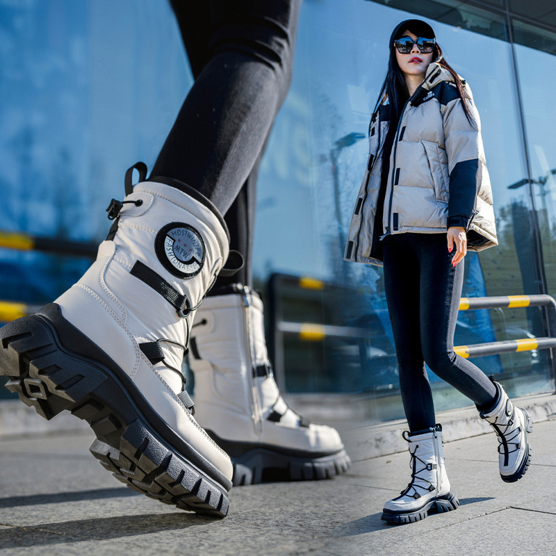 ハルビンの屋外の中筒の雪の靴の女性の冬の保温とベルベットの厚い防水の滑り止めの東北の大きいサイズのスキーの綿の靴