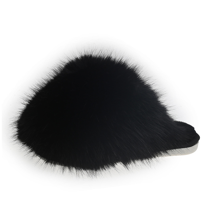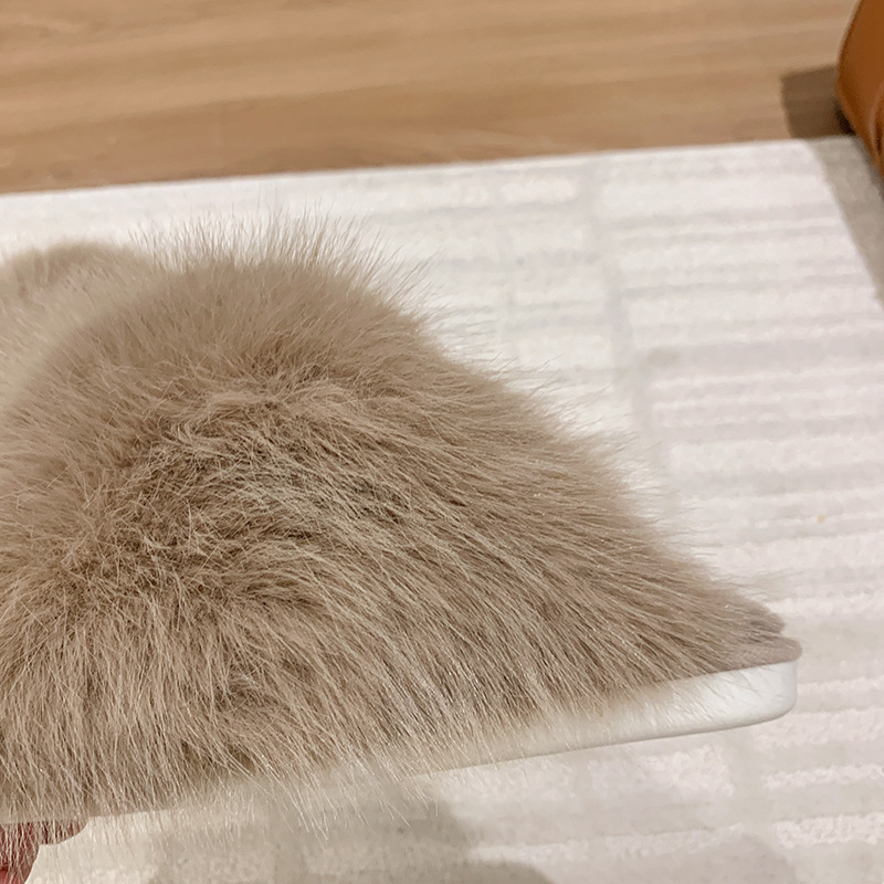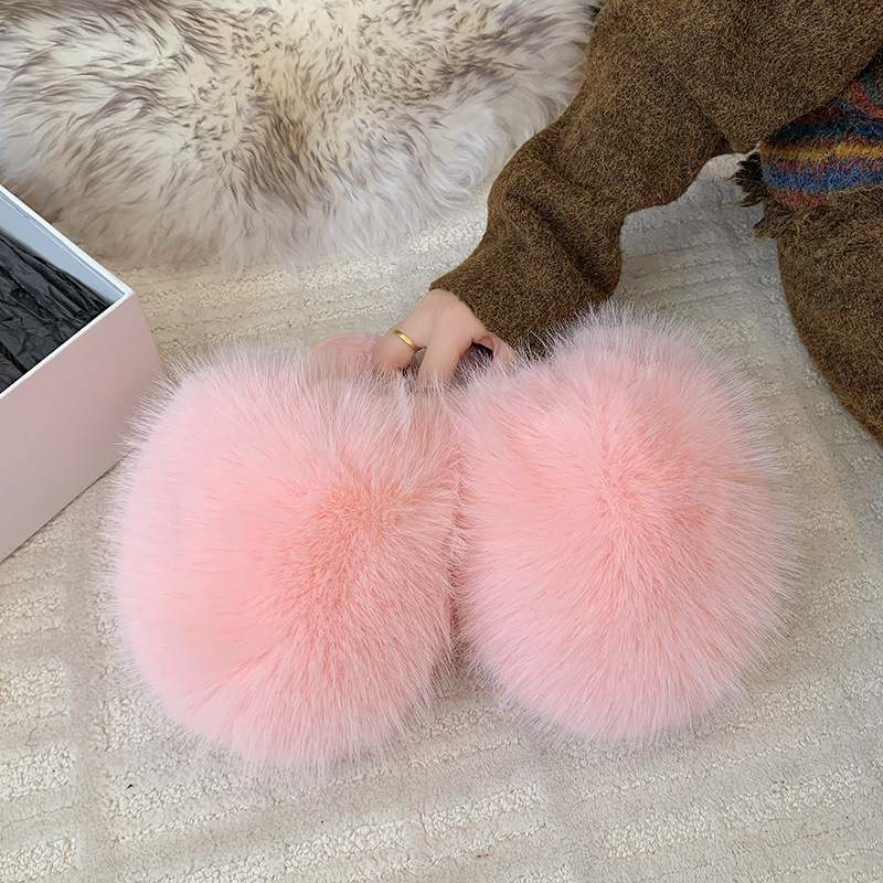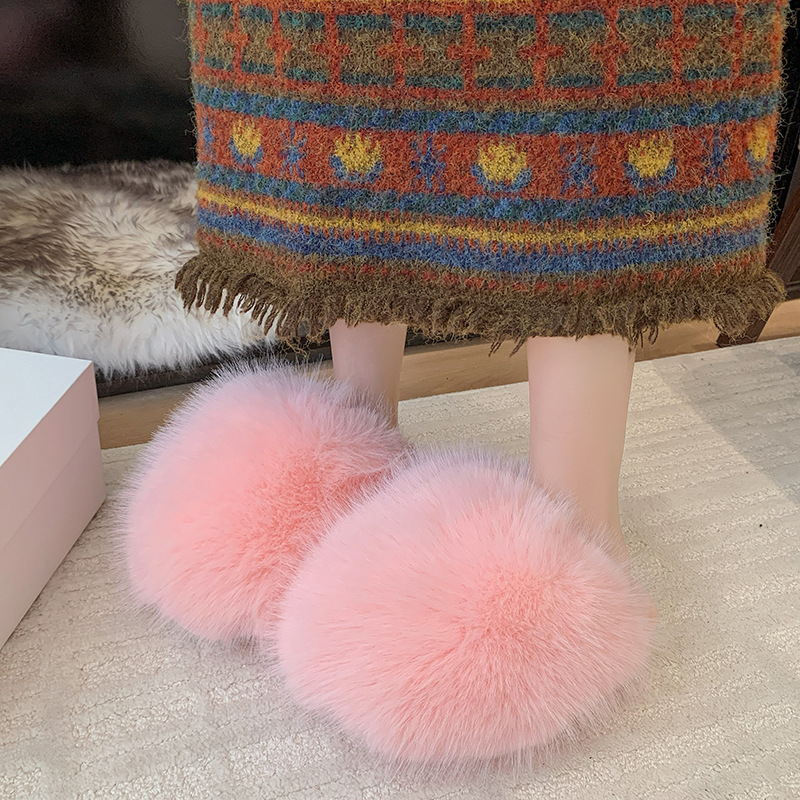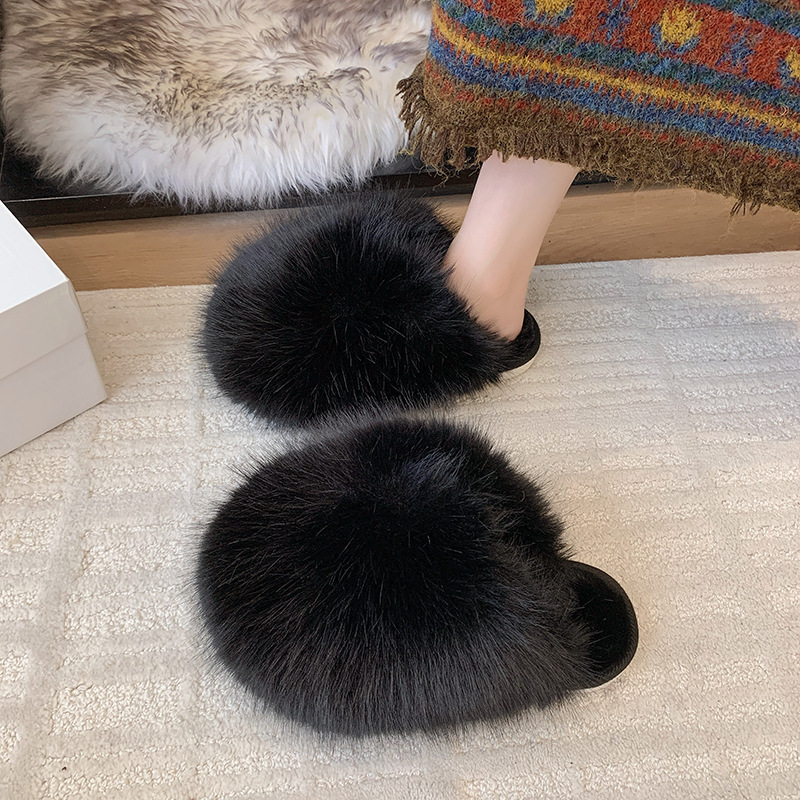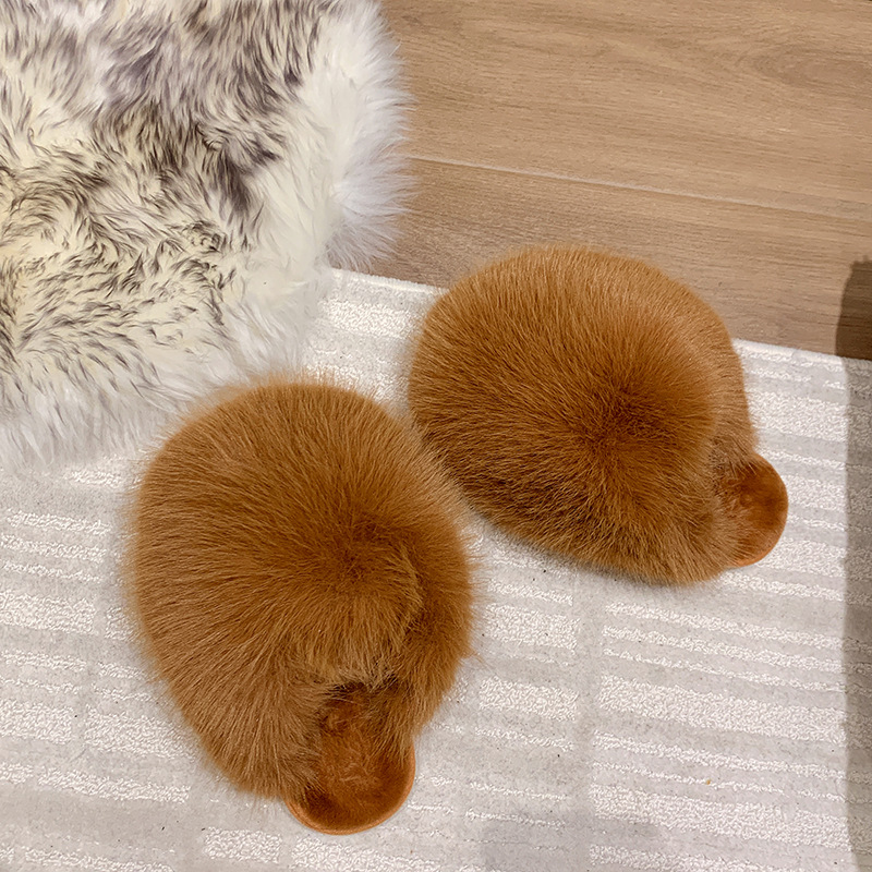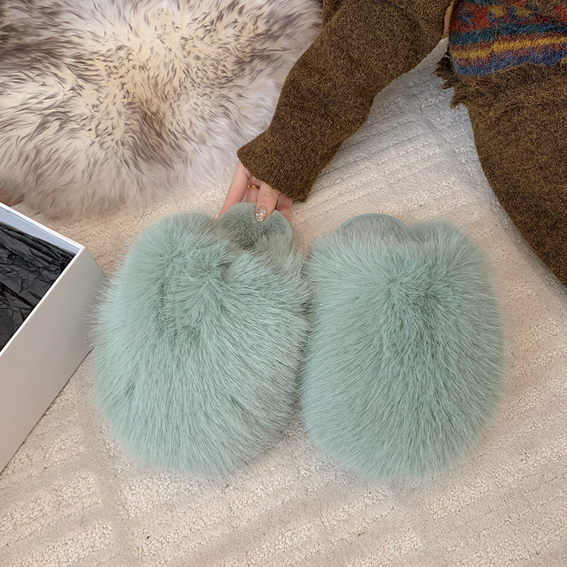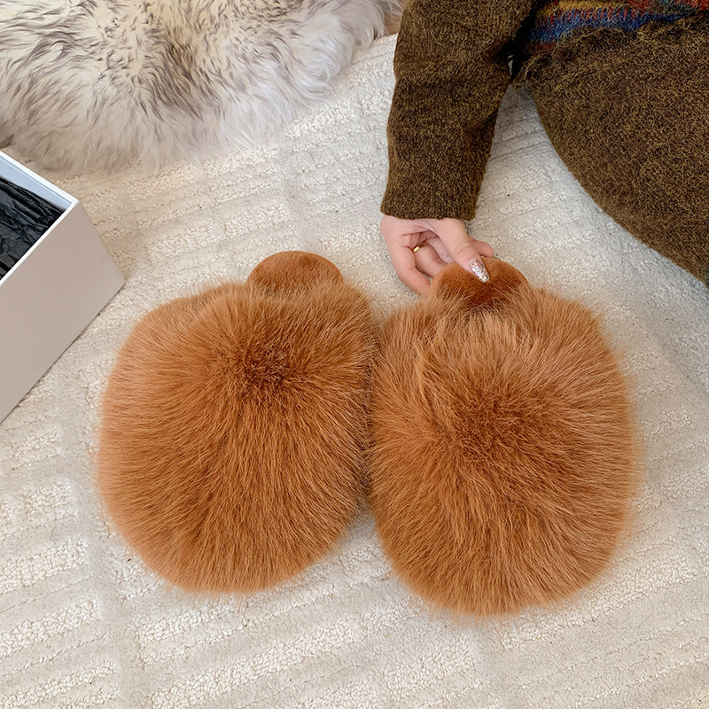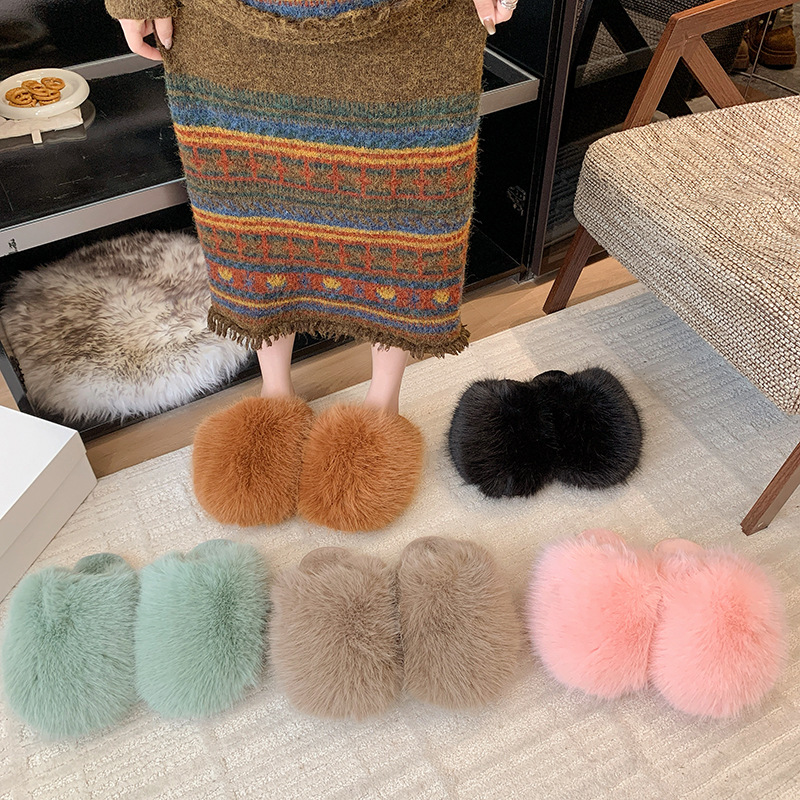 跨境亚马逊秋冬新款仿狐狸毛毛豹纹拖鞋女保暖蓬松毛绒棉拖鞋批发