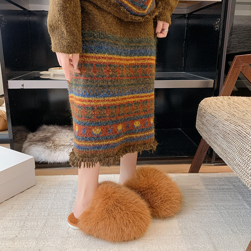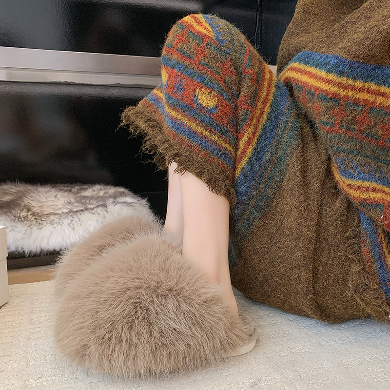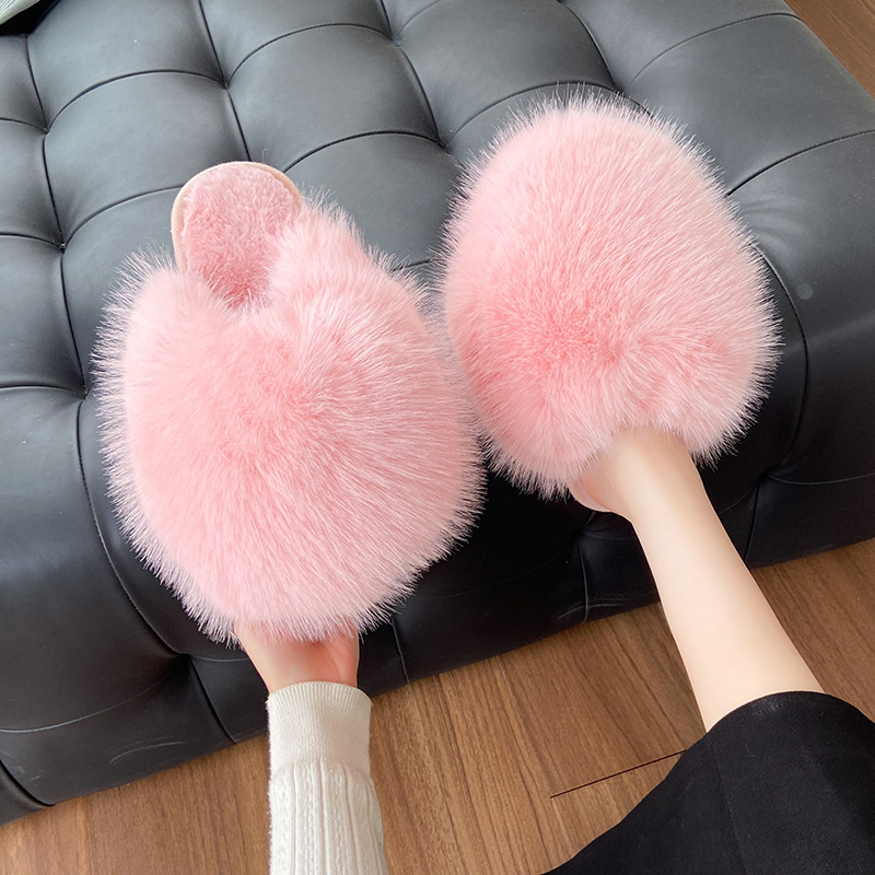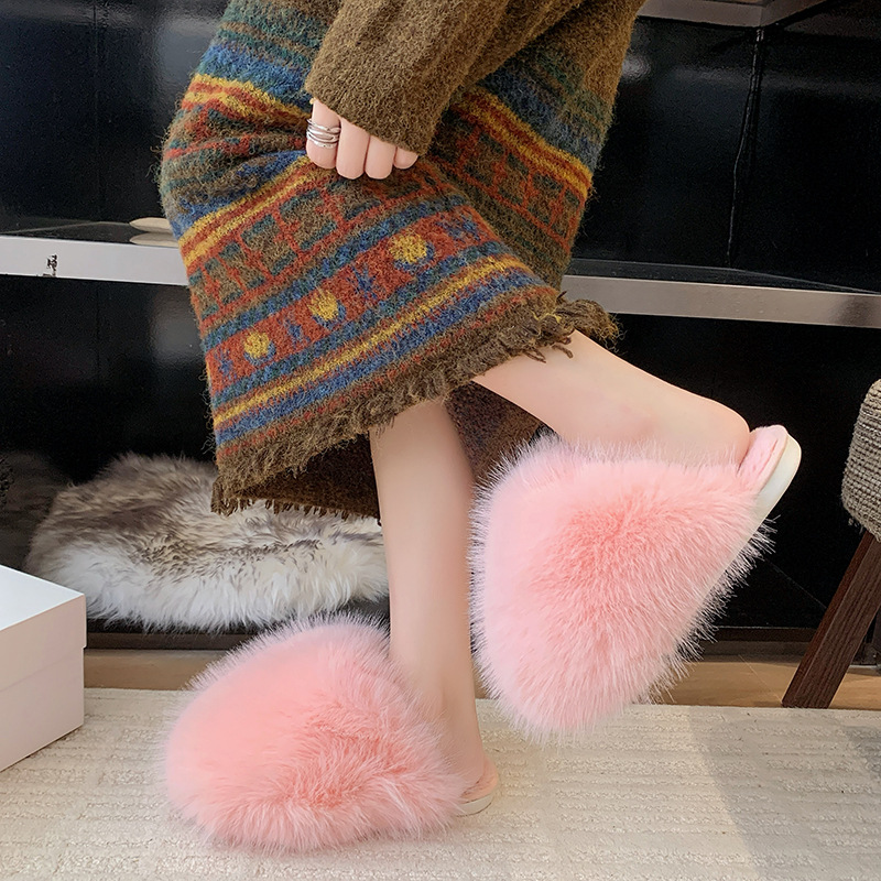 国境を越えた柔らかい底に糞感を踏む包頭毛羽スリッパ女性秋冬屋外パイルカップル保温綿引き大サイズスリッパ