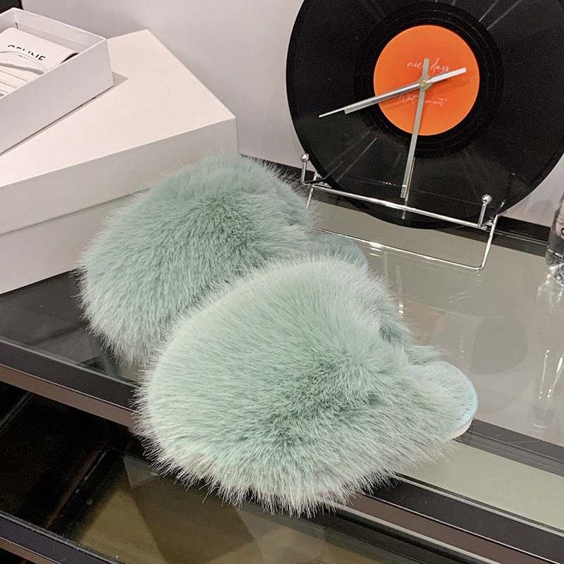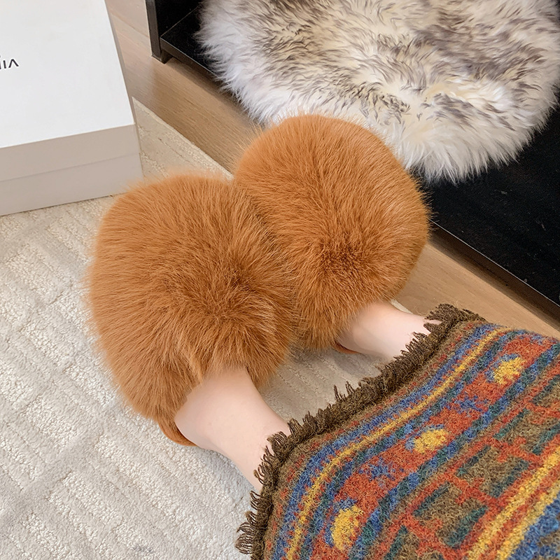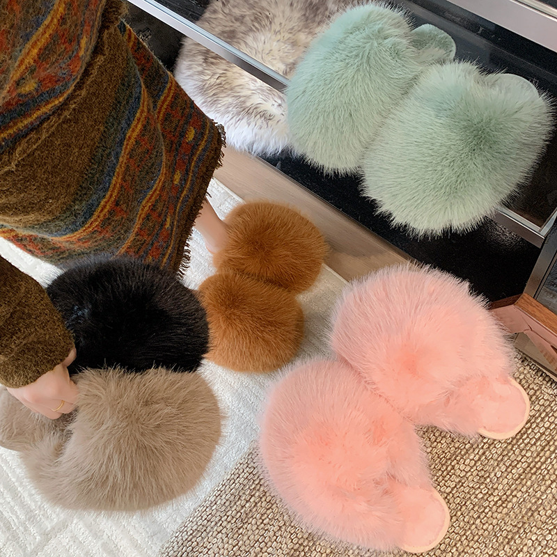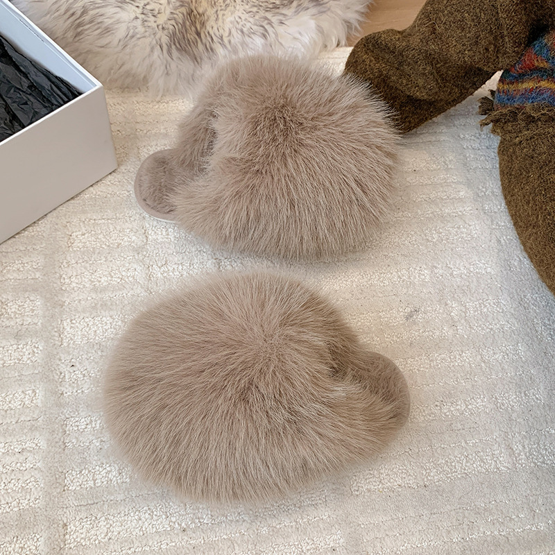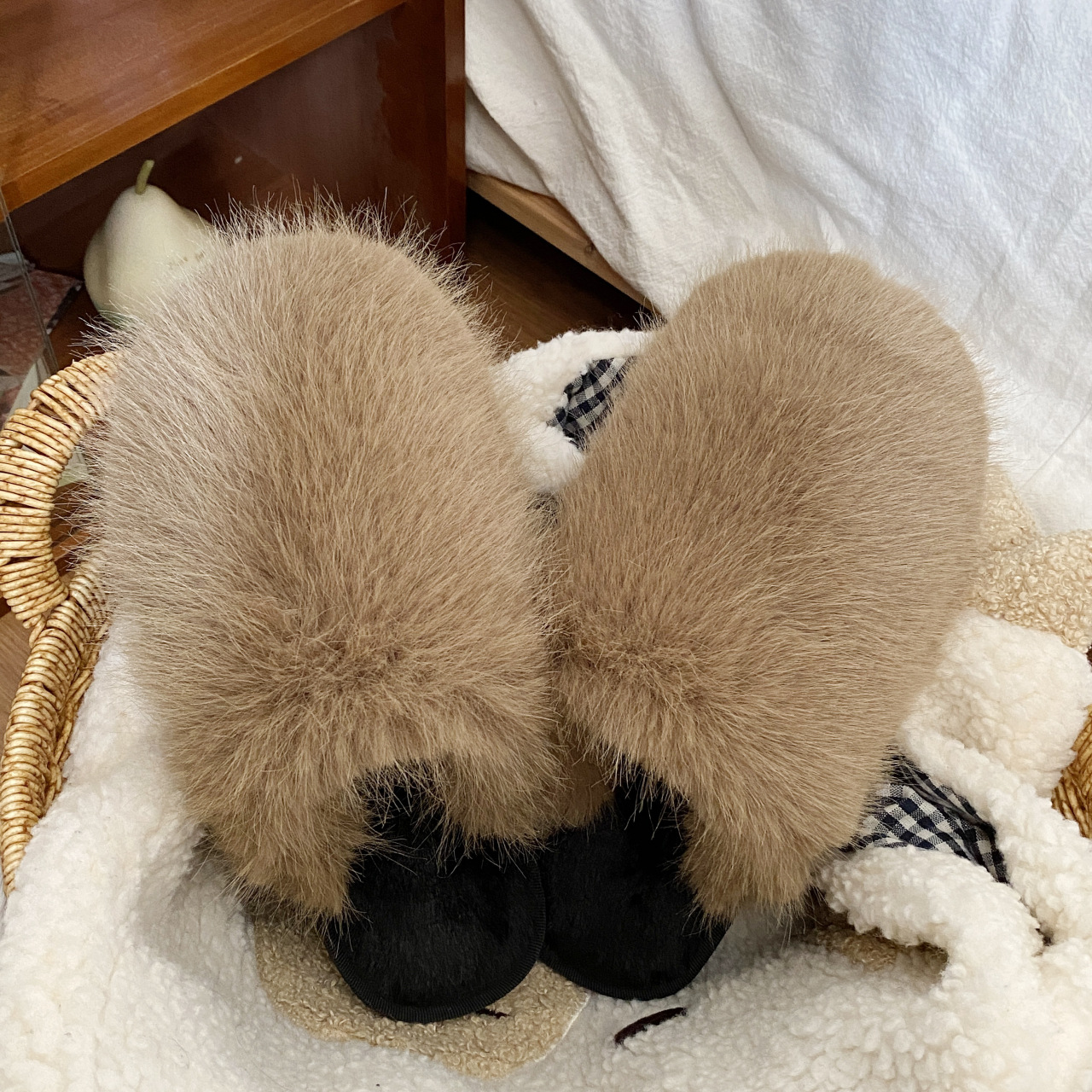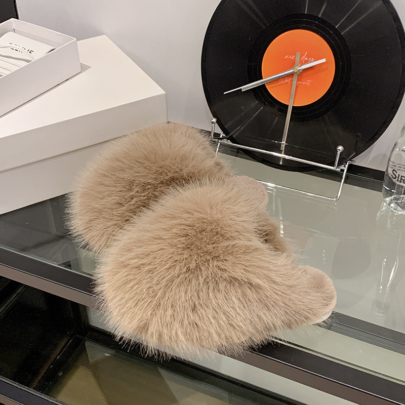 秋の毛のスリッパの女性は2024の新型の高級感の平底の快適な綿のスリッパの大きいサイズの交差の毛を着ます。