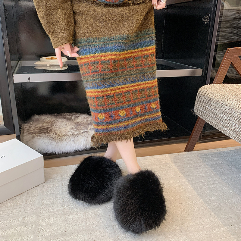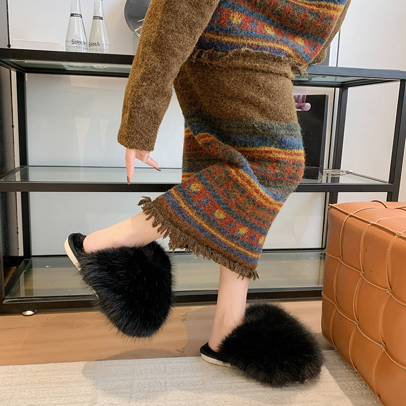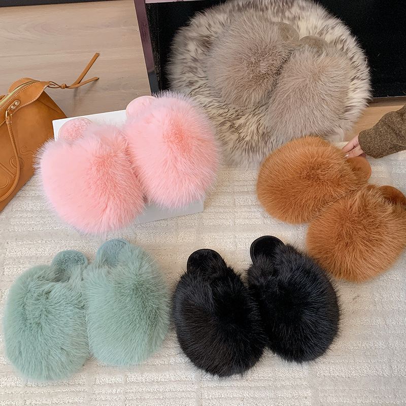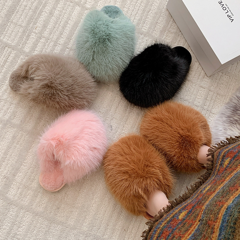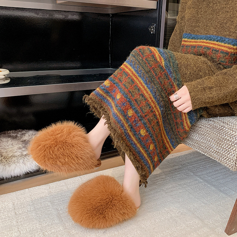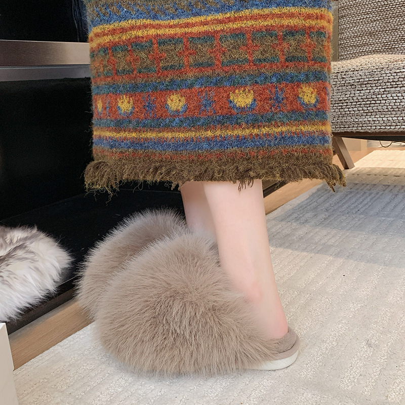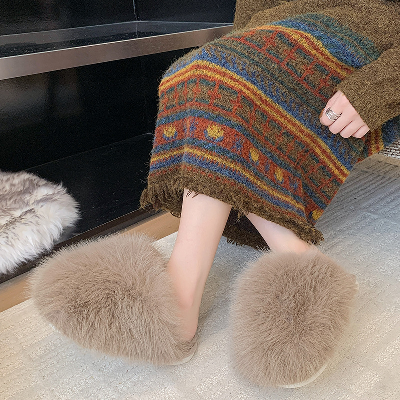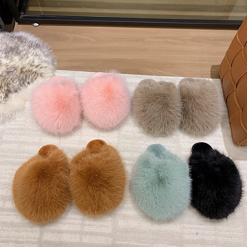 女性用外国貿易毛皮スリッパ 2024 秋冬新スタイル包頭大型スリッパ女性の靴ホームウェアフラット暖かい綿スリッパ