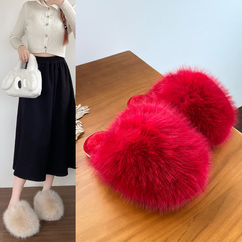 クロス毛スリッパ女性冬対外貿易アマゾン43大サイズの家庭毛毛露指保温縫製綿ドラッグ卸売り