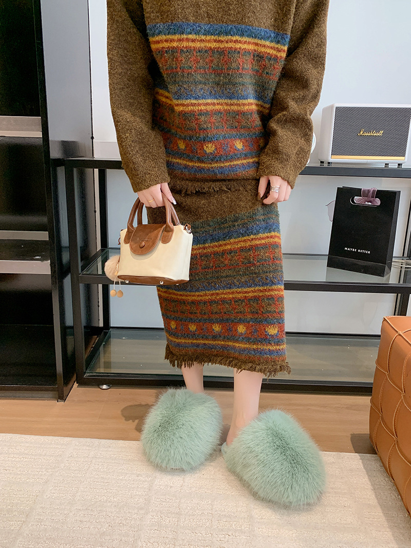 外国貿易ホーム 42 大きいサイズクロスベルト毛皮のスリッパ女性の靴 2025 秋と冬の新しいアウターウェア厚底綿スリッパ卸売