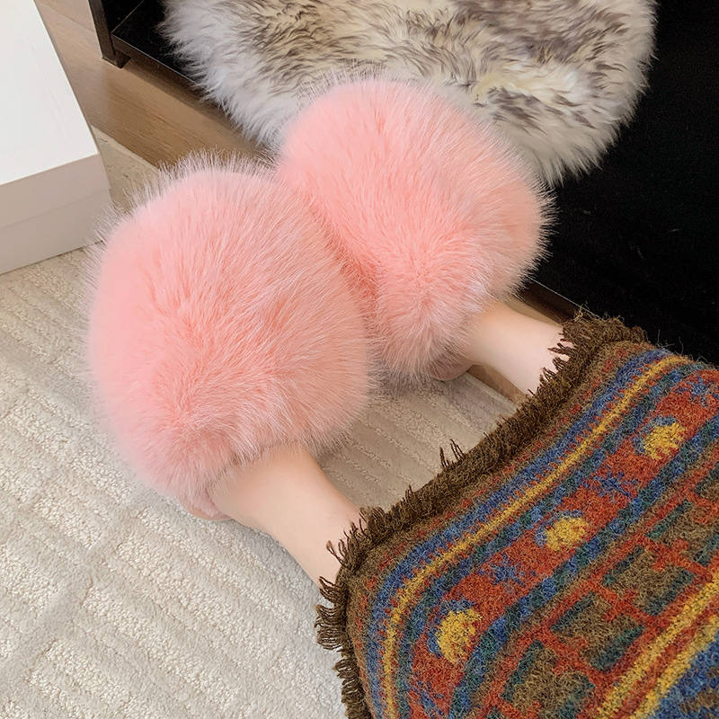 外国貿易のクロスボーダーのぬいぐるみのスリッパの女性欧米の新型の真珠の1字の毛の毛は秋冬の家庭の保温のスリッパの卸売りを引っ張ります。