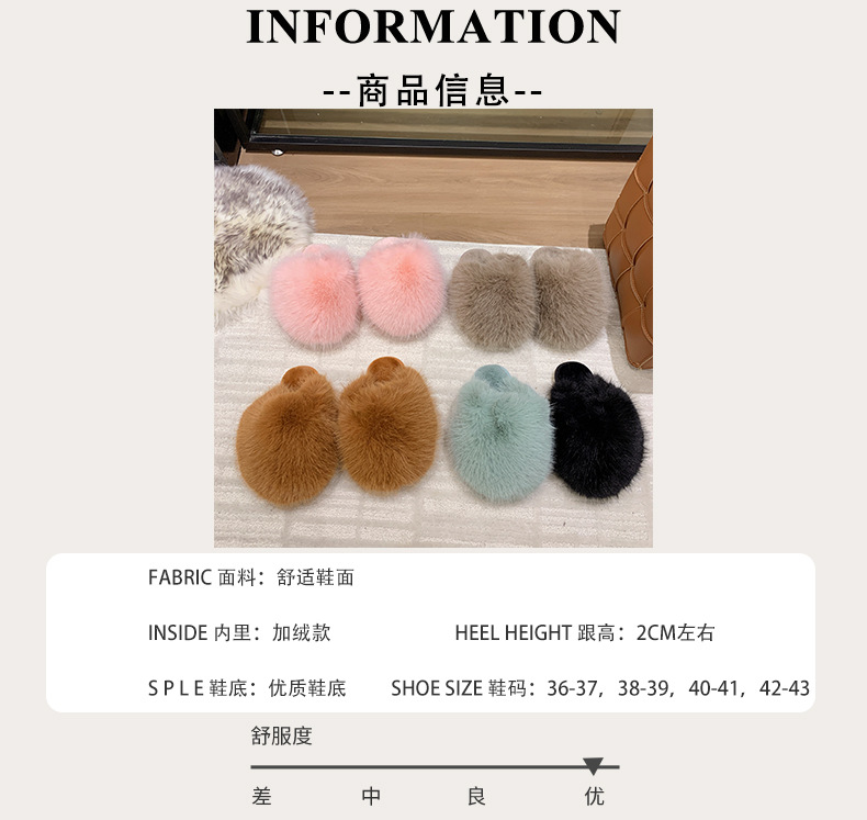 蓬松毛毛拖鞋女款鞋秋冬季时尚多色外贸大码新款平底包头保暖棉拖