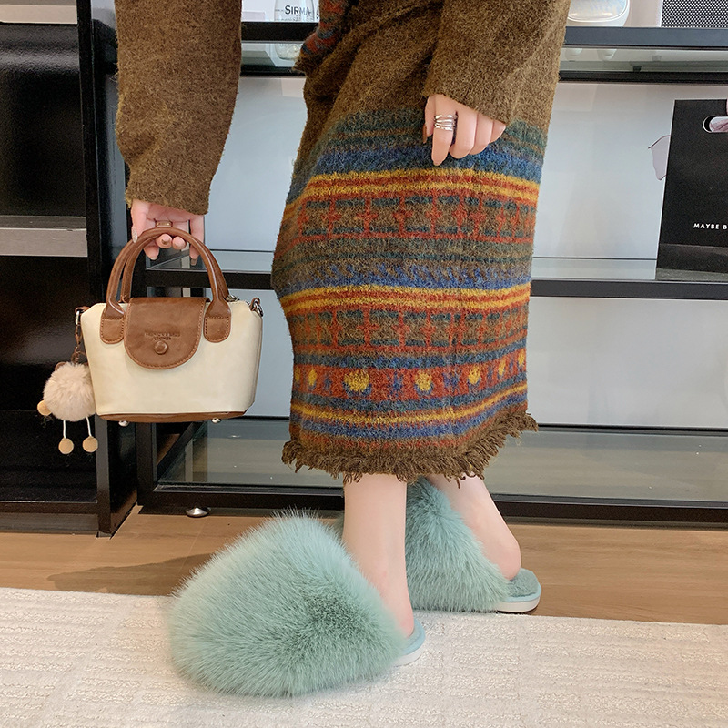跨境亚马逊多巴胺拼色可爱卡通毛毛鞋女2025秋冬新款外穿少女毛拖