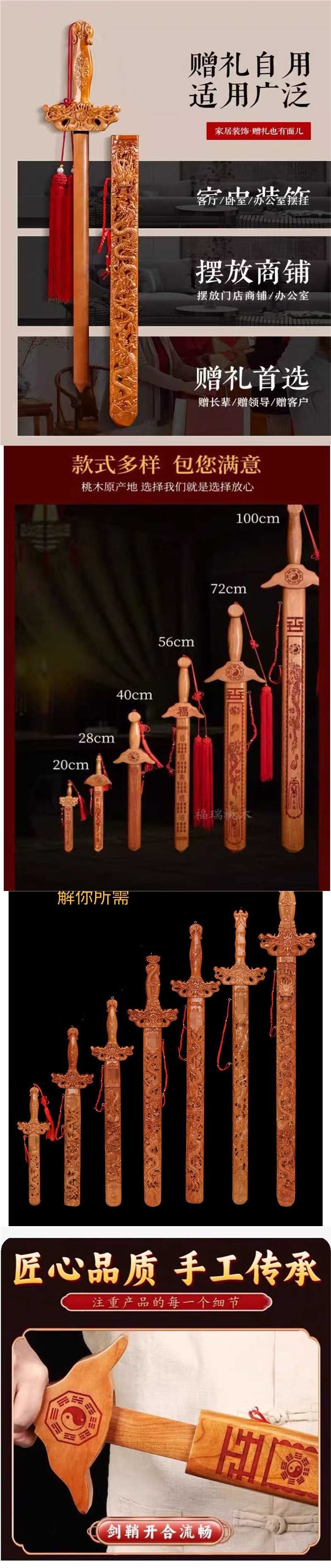 桃木剑挂件纯七星八卦婴儿搬家装饰剑大号九龙宝剑法器