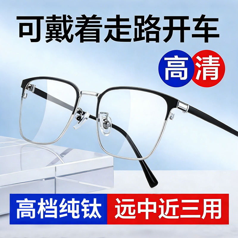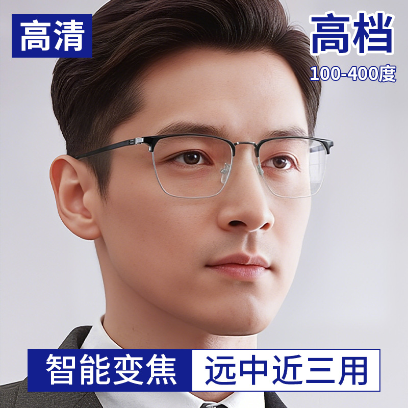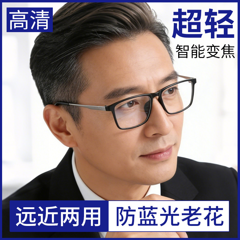智能变焦老花镜远中近三用高清花镜男8999高档纯钛老花眼镜防蓝光