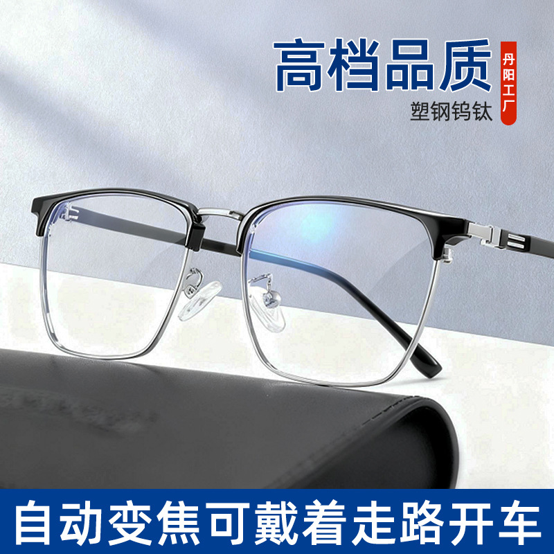 丹阳老花镜高档老人看远看近自动变焦男士防蓝光老花眼镜远近两用