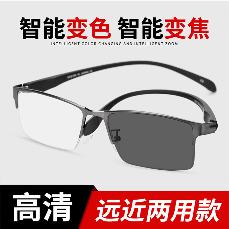 变色老花镜男高级感自动变焦智能老花眼镜防蓝光1642远近两用花镜