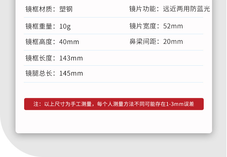 镜片功能 多焦点镜片,远近两用,防蓝光