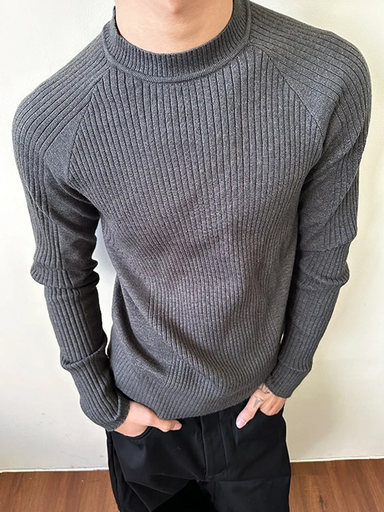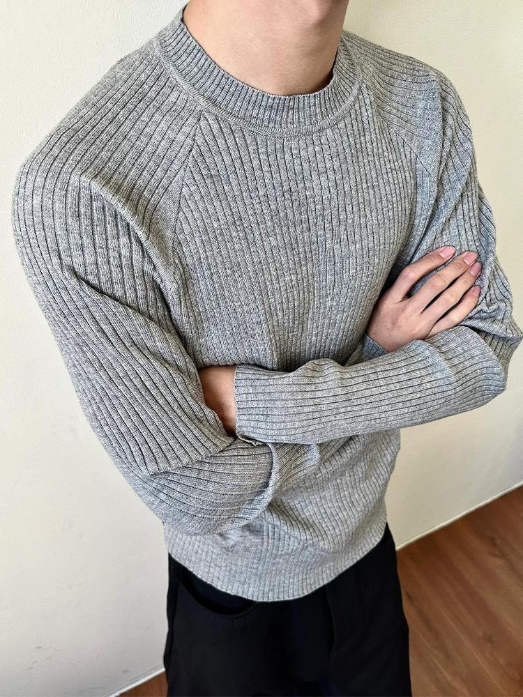 cleanfit灰色圆领毛衣男秋冬季美式修身重磅保暖打底衫潮牌针织衫