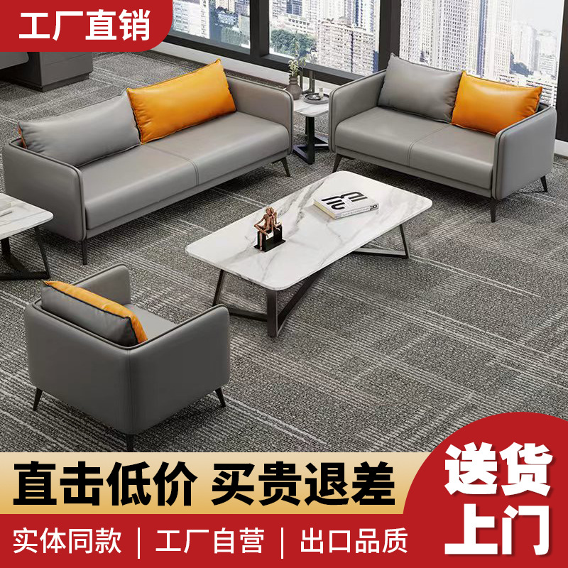 办公沙发茶几组合商务休息接待会客小型公寓现代简约办公室皮沙发