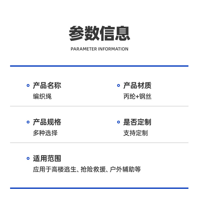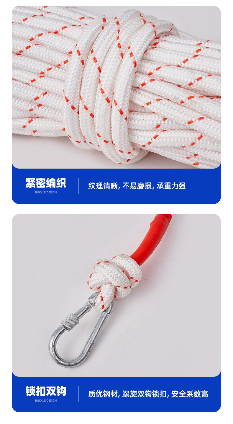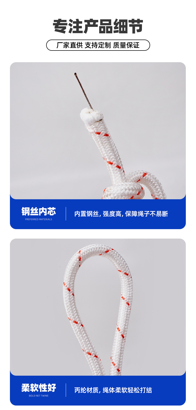 丙纶安全绳 高空作业保险绳加钢丝丙纶安全绳 消防救援逃生绳