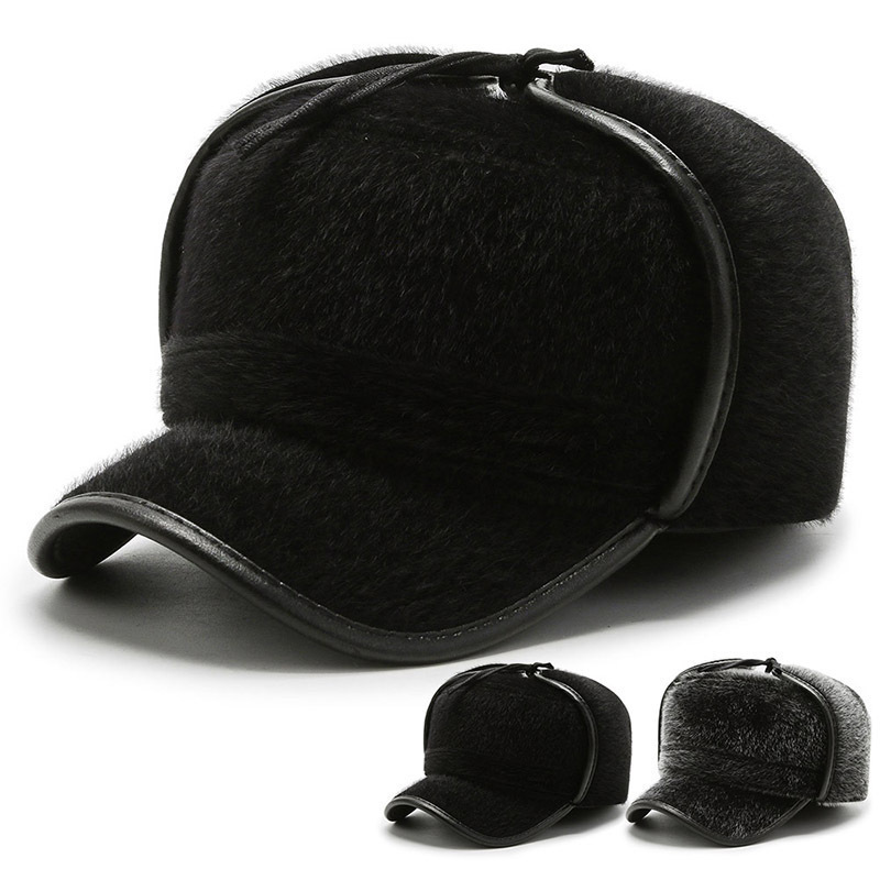 冬季男士新款中老年棒球帽户外加厚仿貂毛雷锋帽子保暖护耳平顶帽