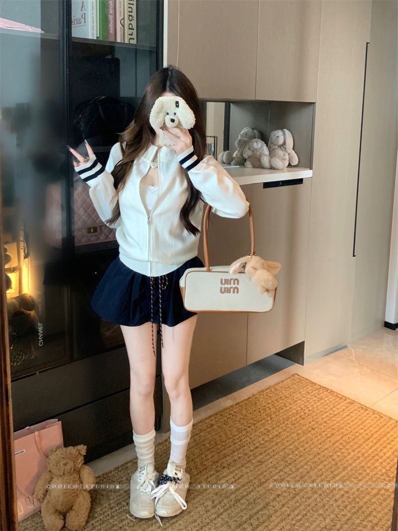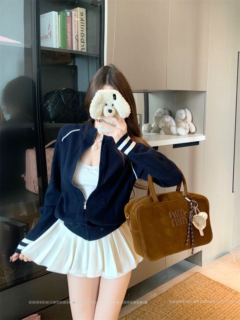 学院风立领撞色长袖针织衫女2025秋季新款设计感显瘦拉链甜辣外套