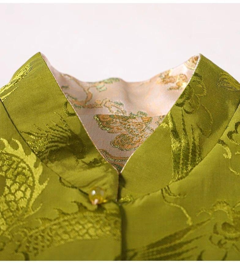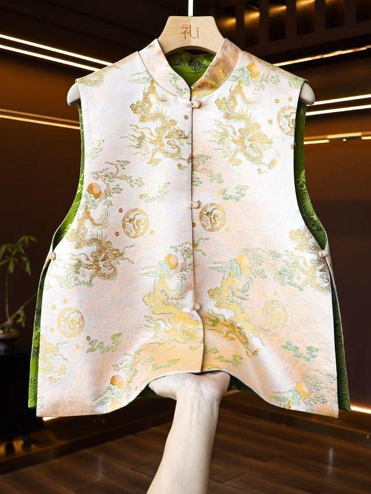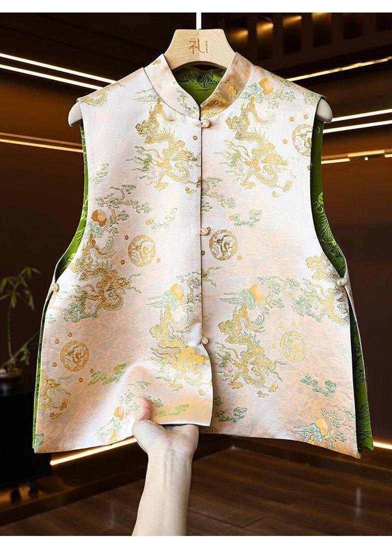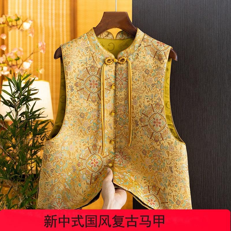 2025起爆金復古盤バックル重工ジャカード唐装ベスト馬挟み新中国式カン肩小柄上着馬甲