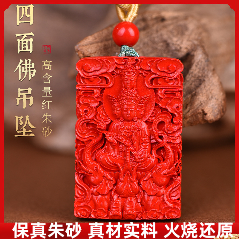 原矿朱砂普贤菩萨精美绳吊坠高含量帝王砂红砂护身符吊坠项链批发