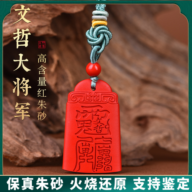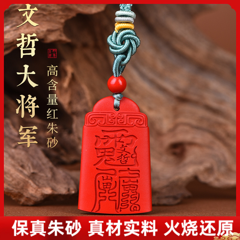 原矿朱砂文哲大将军钥匙扣高含量帝王红砂挂件护身符工厂直销代发