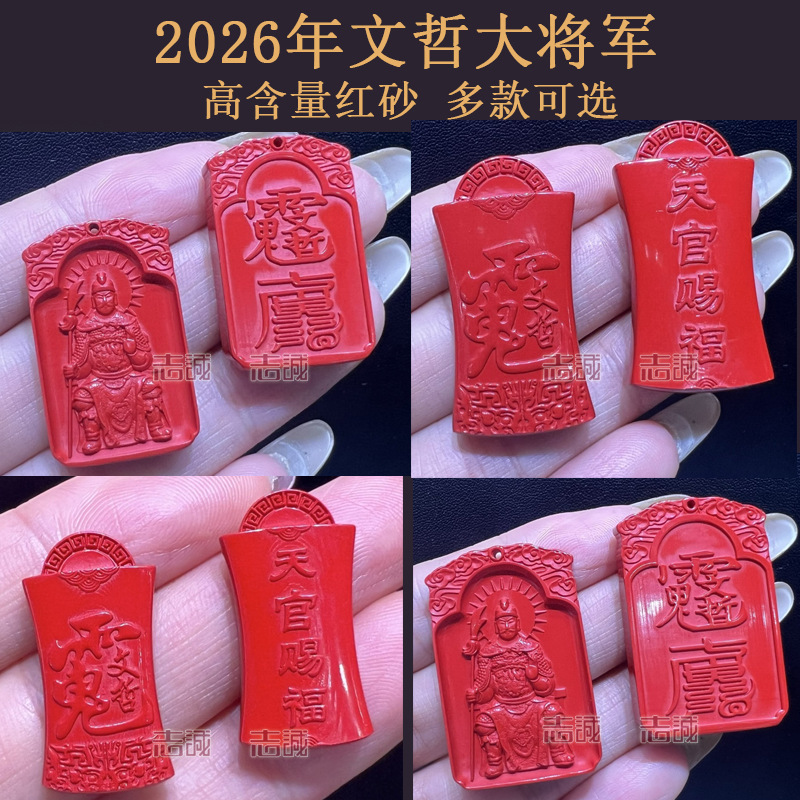 新型2025乙巳蛇年呉随大将軍天然高含有量紅砂ペンダント赤色朱砂ペンダント男女