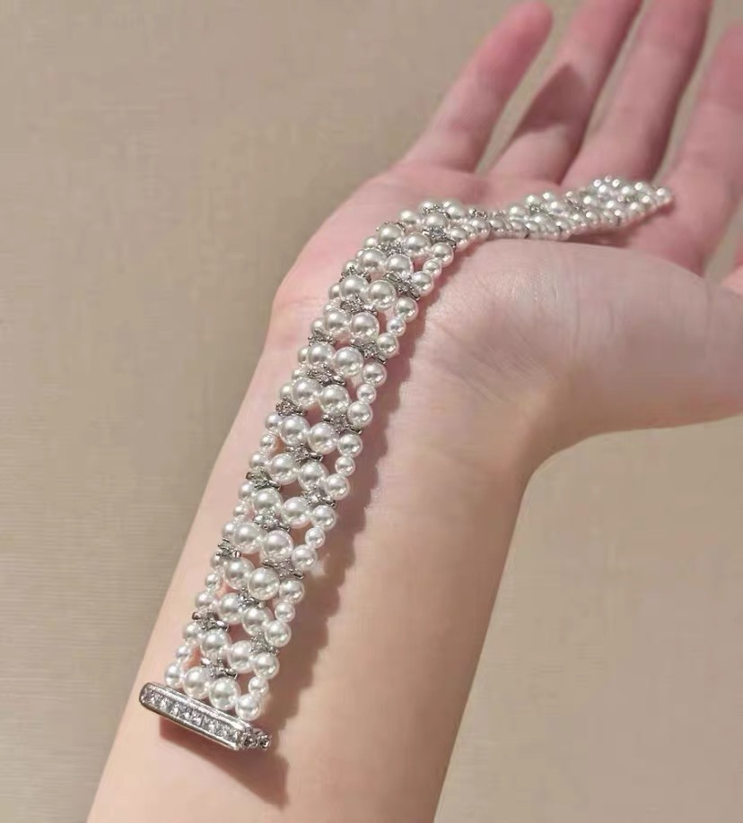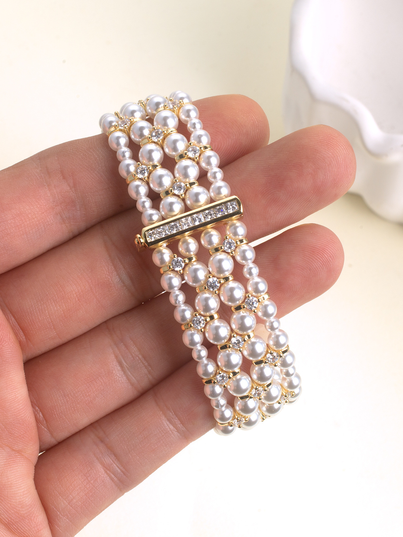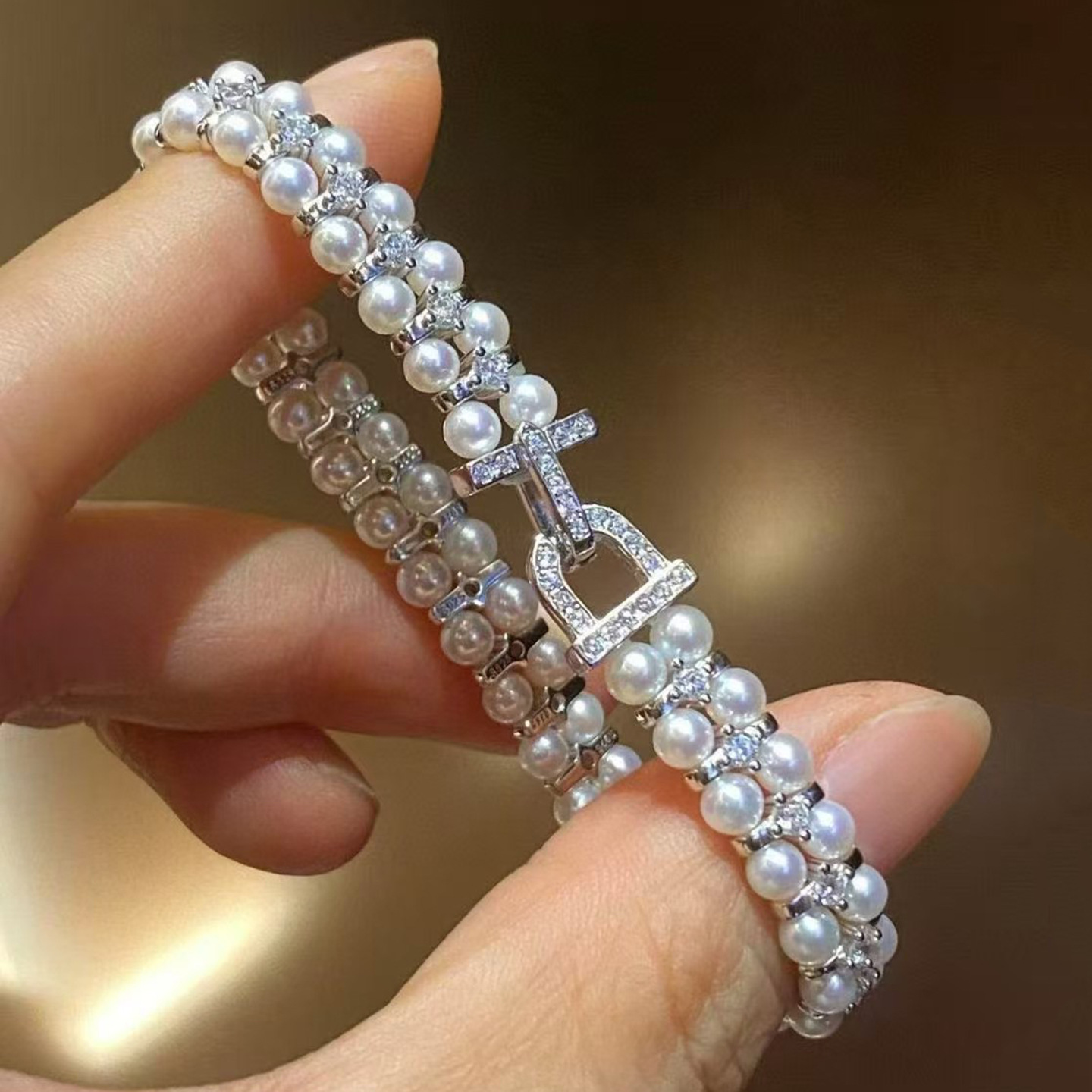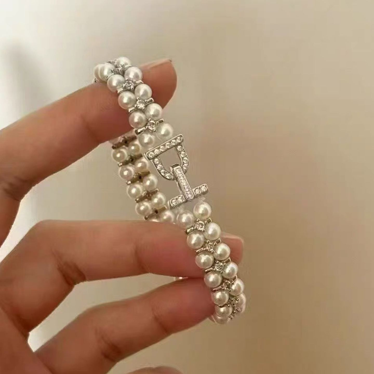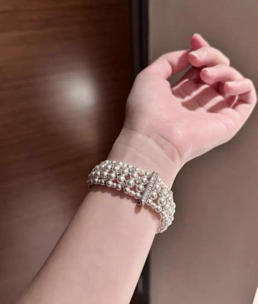 韩版热销轻奢手饰 甜美锆钻弹力手链 双层施家珍珠手镯新娘手饰