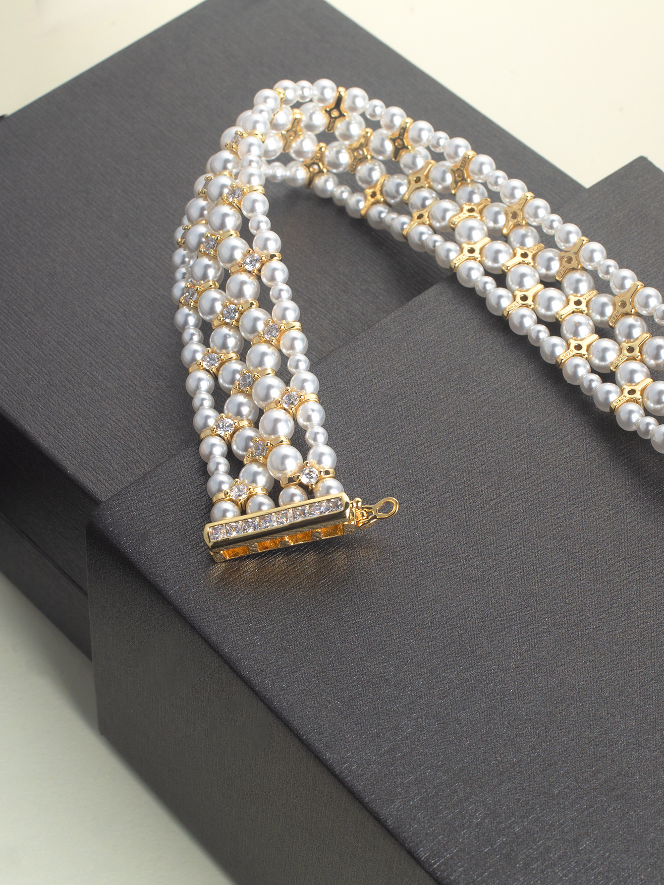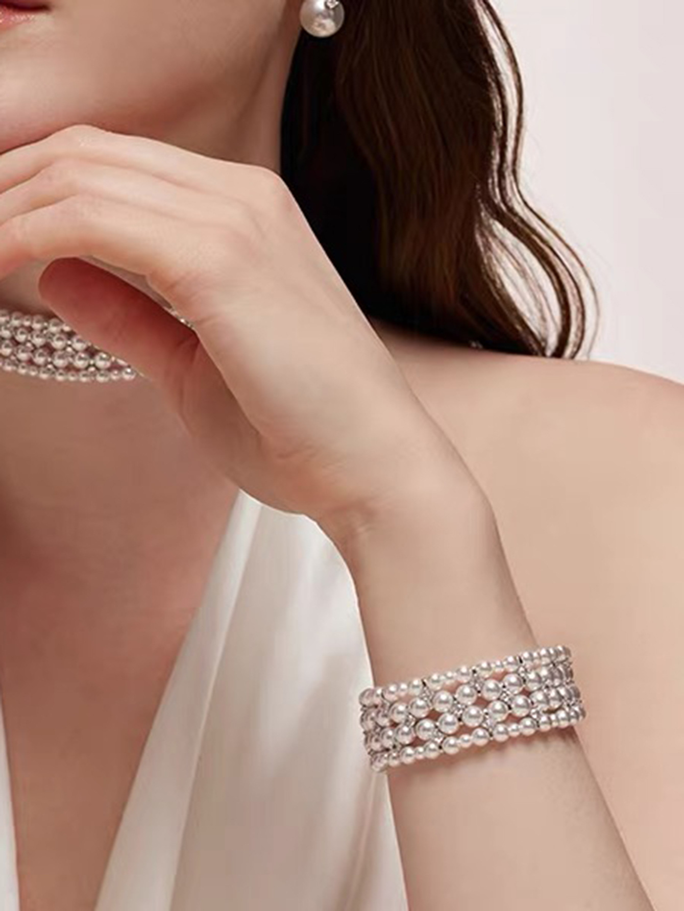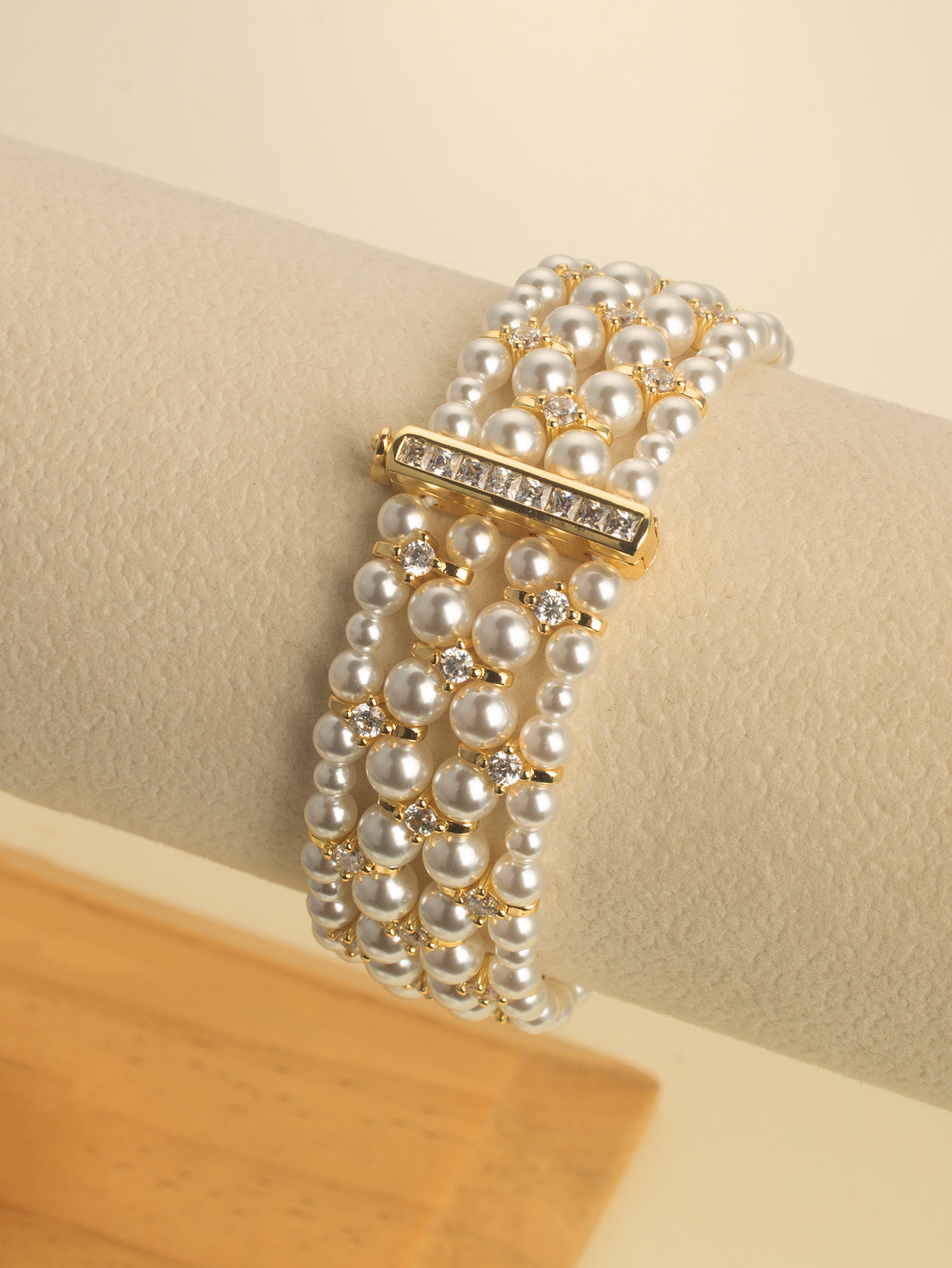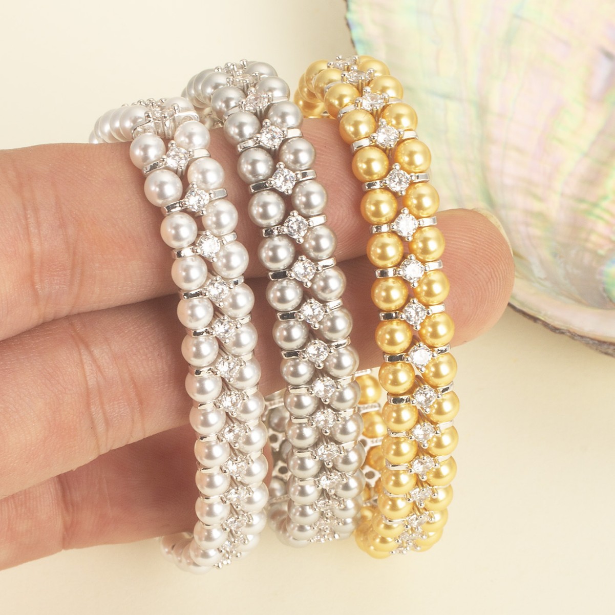 韩版热销轻奢手饰 甜美锆钻弹力手链 双层施家珍珠手镯新娘手饰
