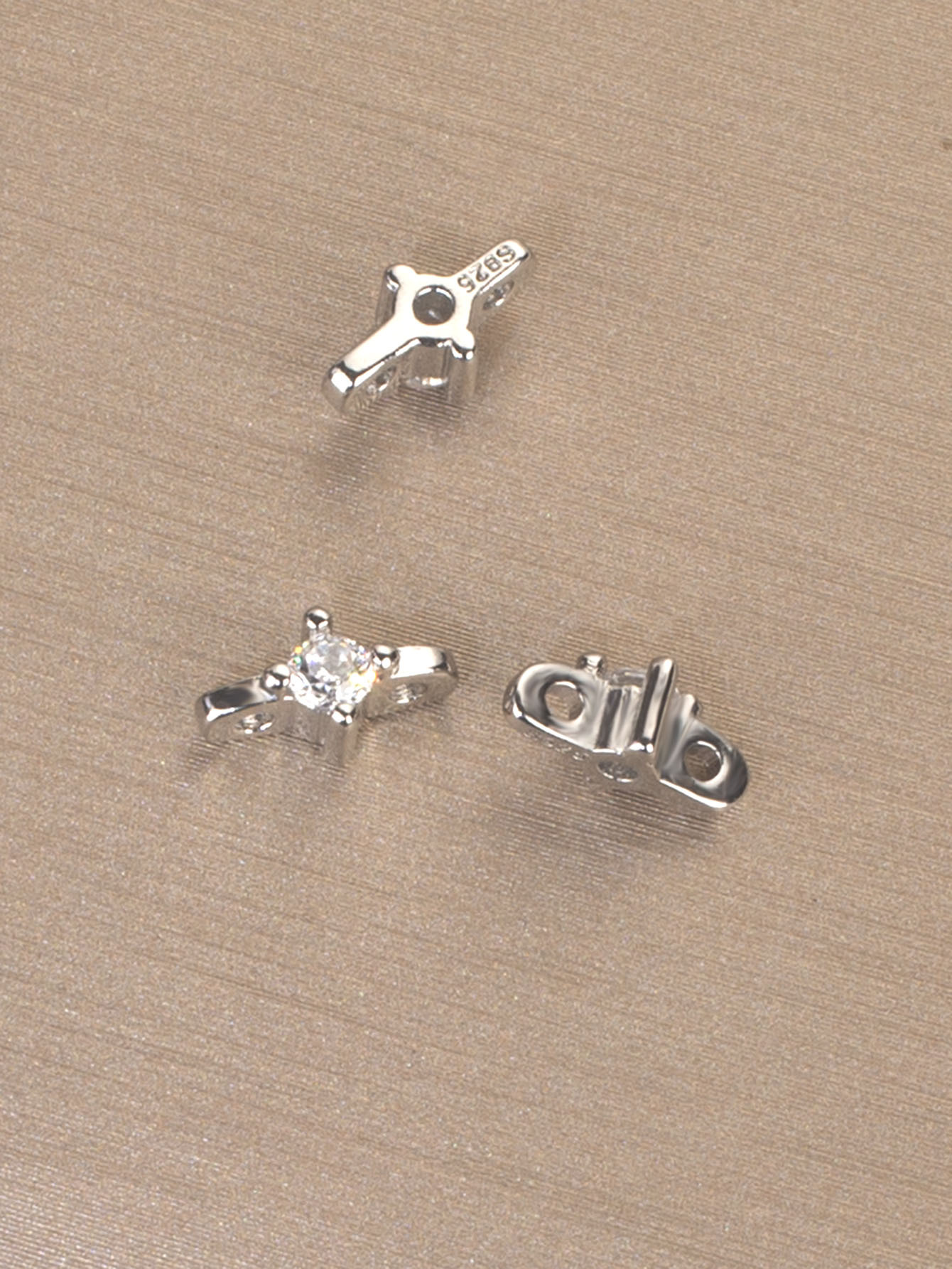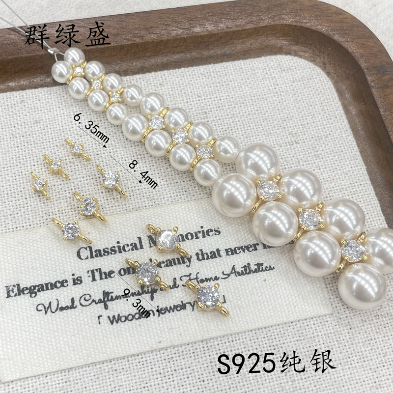 群绿盛S925纯银单钻双孔隔片双排手串隔珠配件diy多排珍珠固定珠