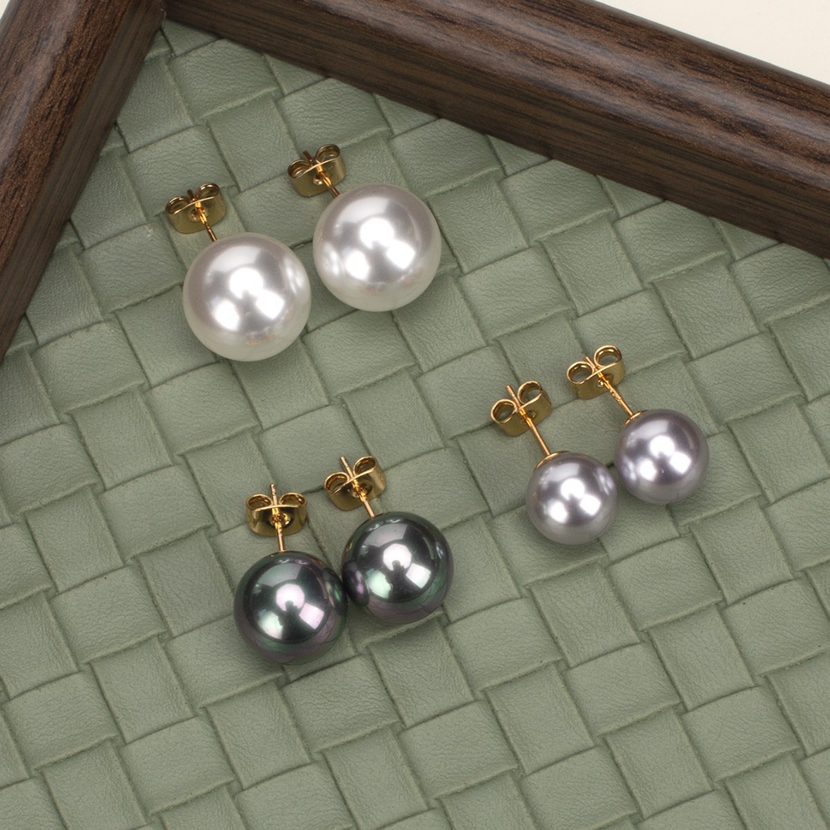 タヒチピーコックグリーンパールイヤリング S925 シルバーボウル針レディースファッションハイエンドパールイヤリングファッショナブルで多用途
