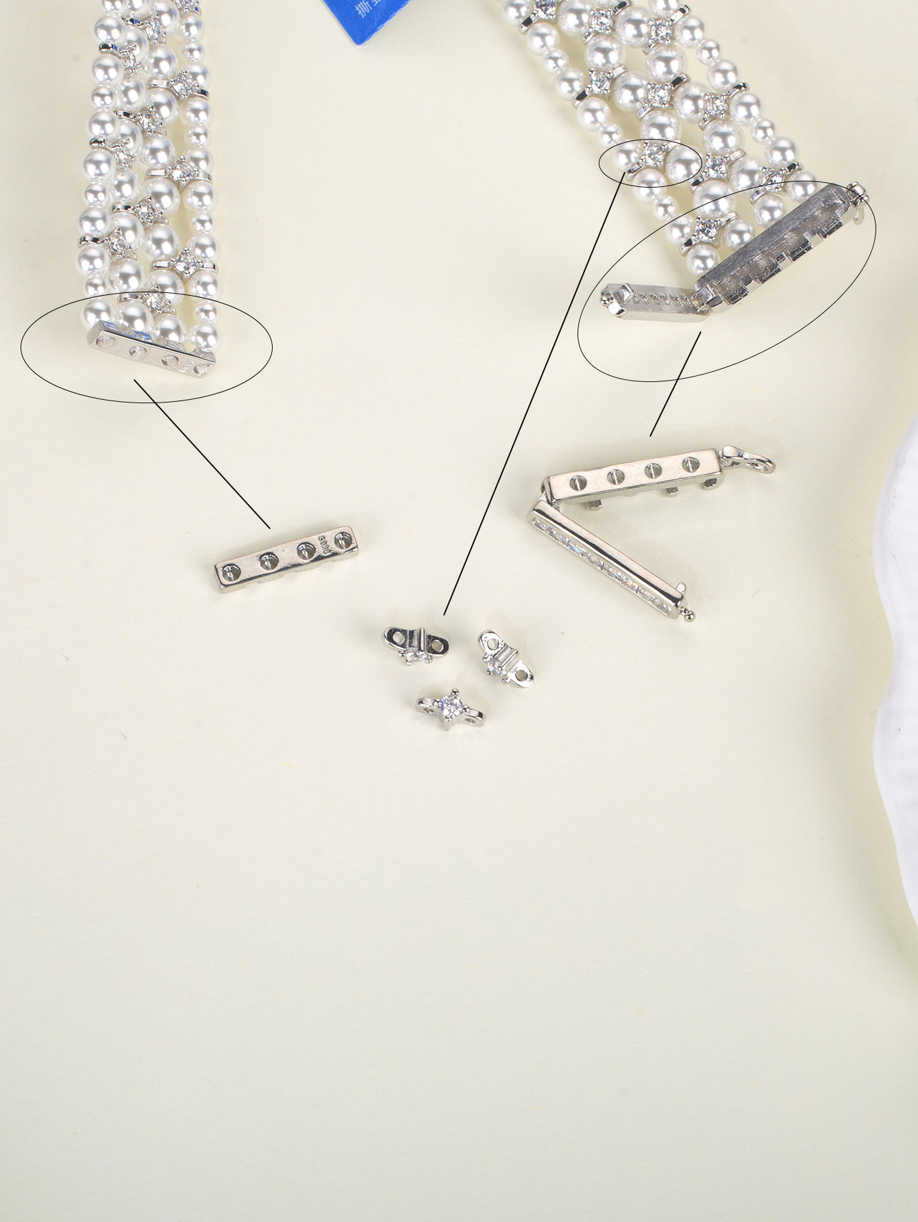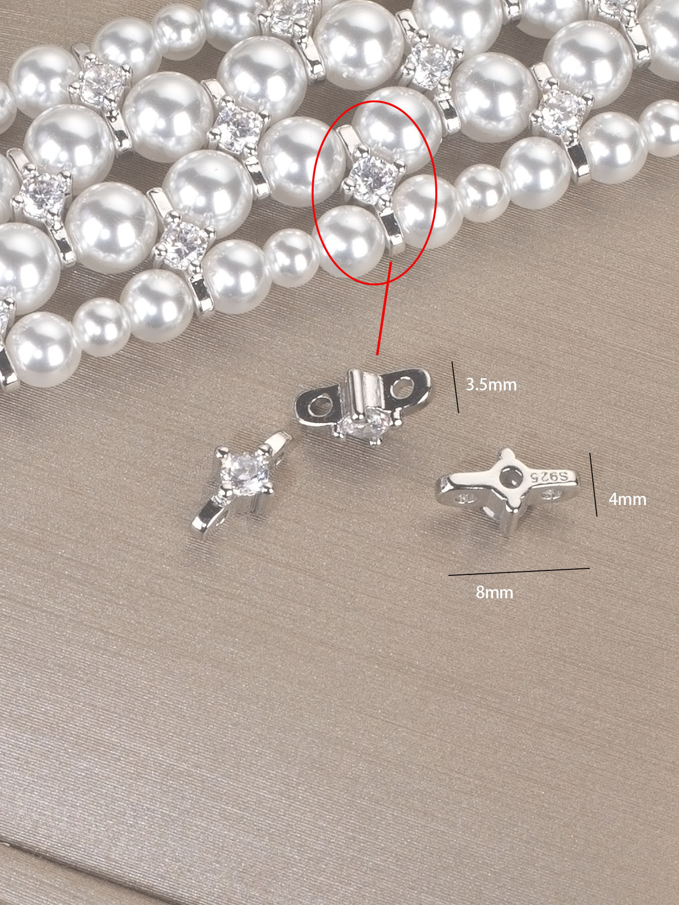 DIY配件 S925纯银珍珠项链手链双排扣 轻奢串珠搭扣银扣隔片3-4mm