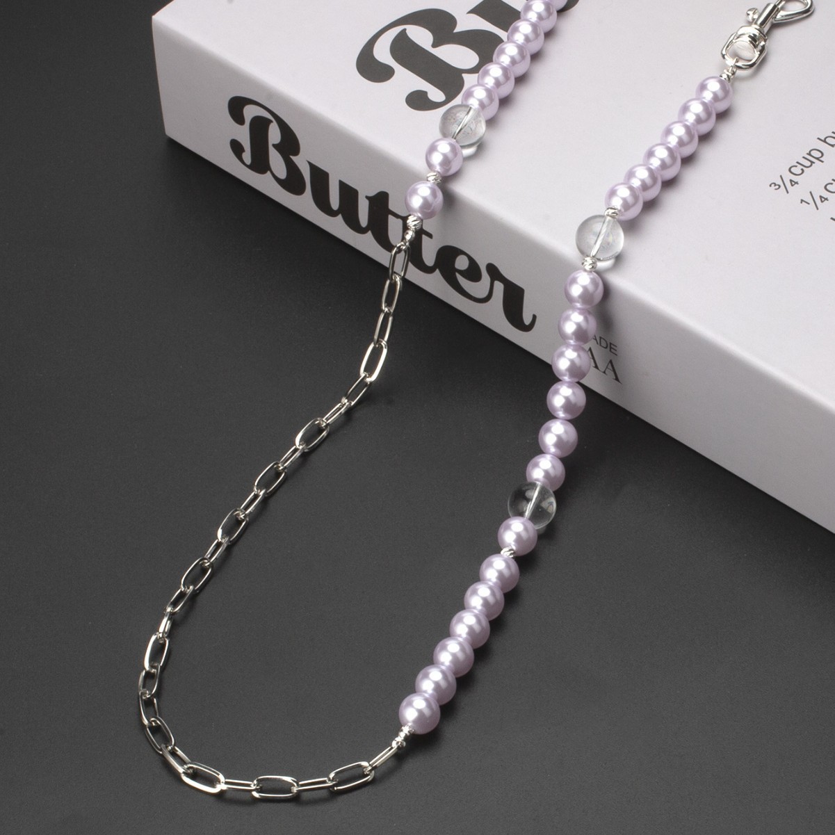 ラベンダークリスタルパープルパールステッチスクエア太鋼チェーンレディースサマーインヒップホップトレンディクールパンツチェーン2025新スタイル