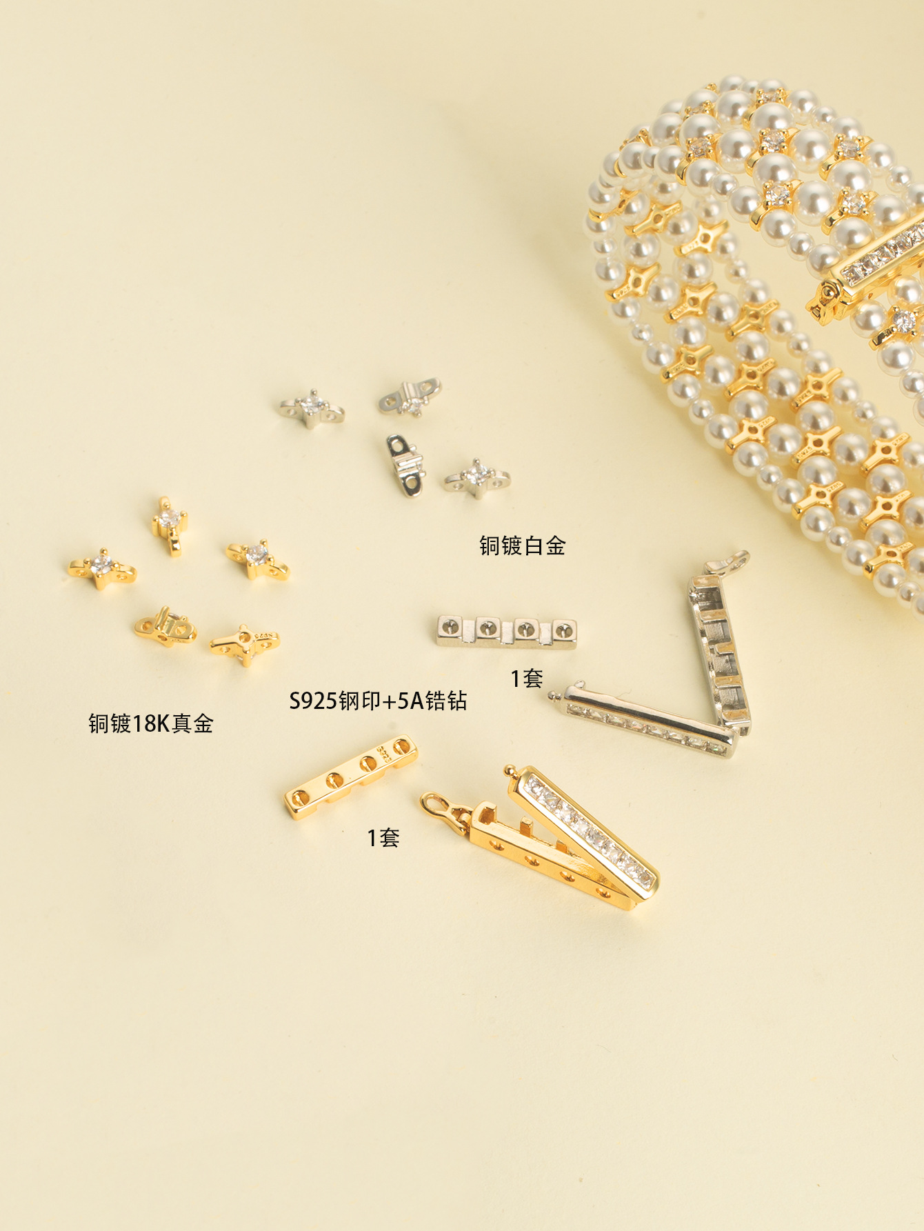 颜色 白金色-星星隔片,白金色-收尾扣头(1套不含隔片),镀18K真金金色-星星隔片,镀18K真金-收尾扣头(1套不含隔片)