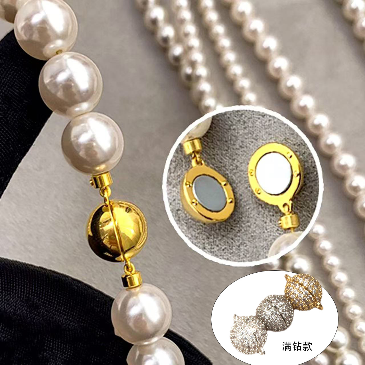 DIY ジュエリー アクセサリー強力な磁気磁気バックルフルダイヤモンドボールと滑らかな球状磁気バックルユニバーサルパールネックレスフィニッシュバックル