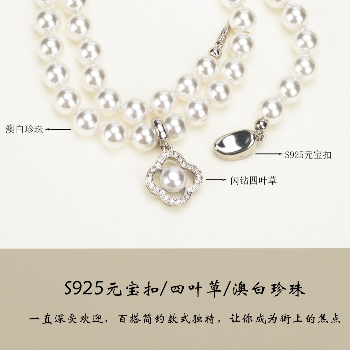 四つ葉のクローバーネックレス ダイヤモンドパール付き 鎖骨チェーン S925 インゴットバックル ニッチで軽い高級デザイン 誕生日/卒業シーズン初