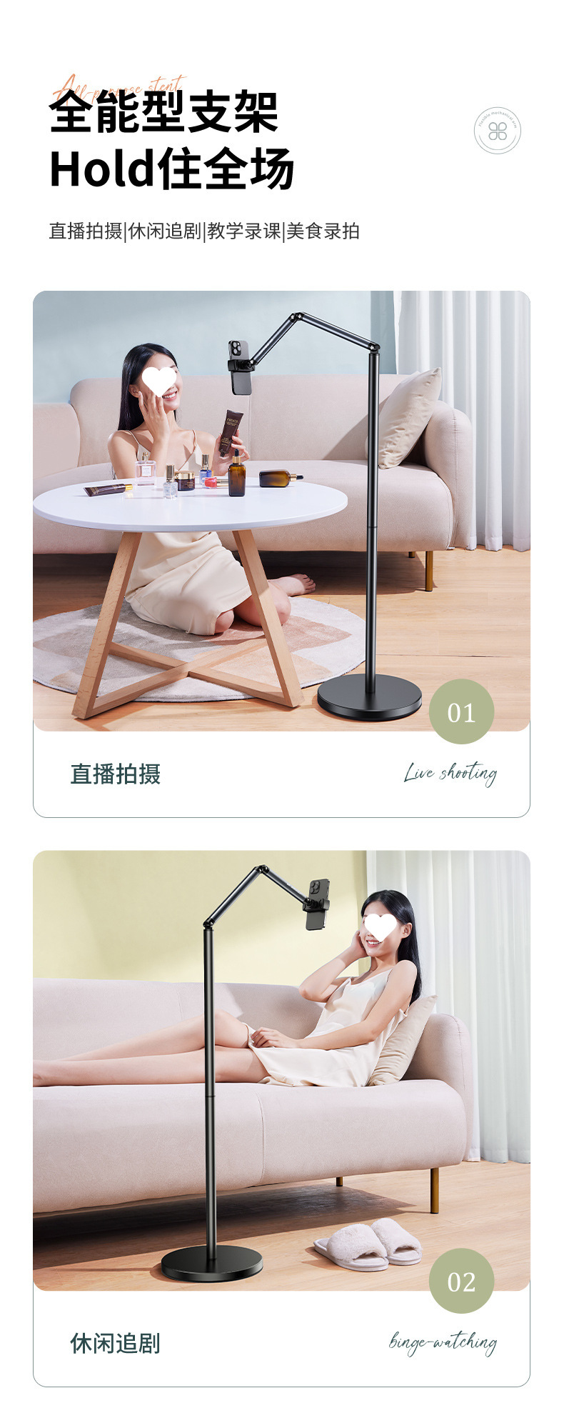 小天直播手机专用支架落地俯拍手机架拍摄直播架落地懒人落地支架