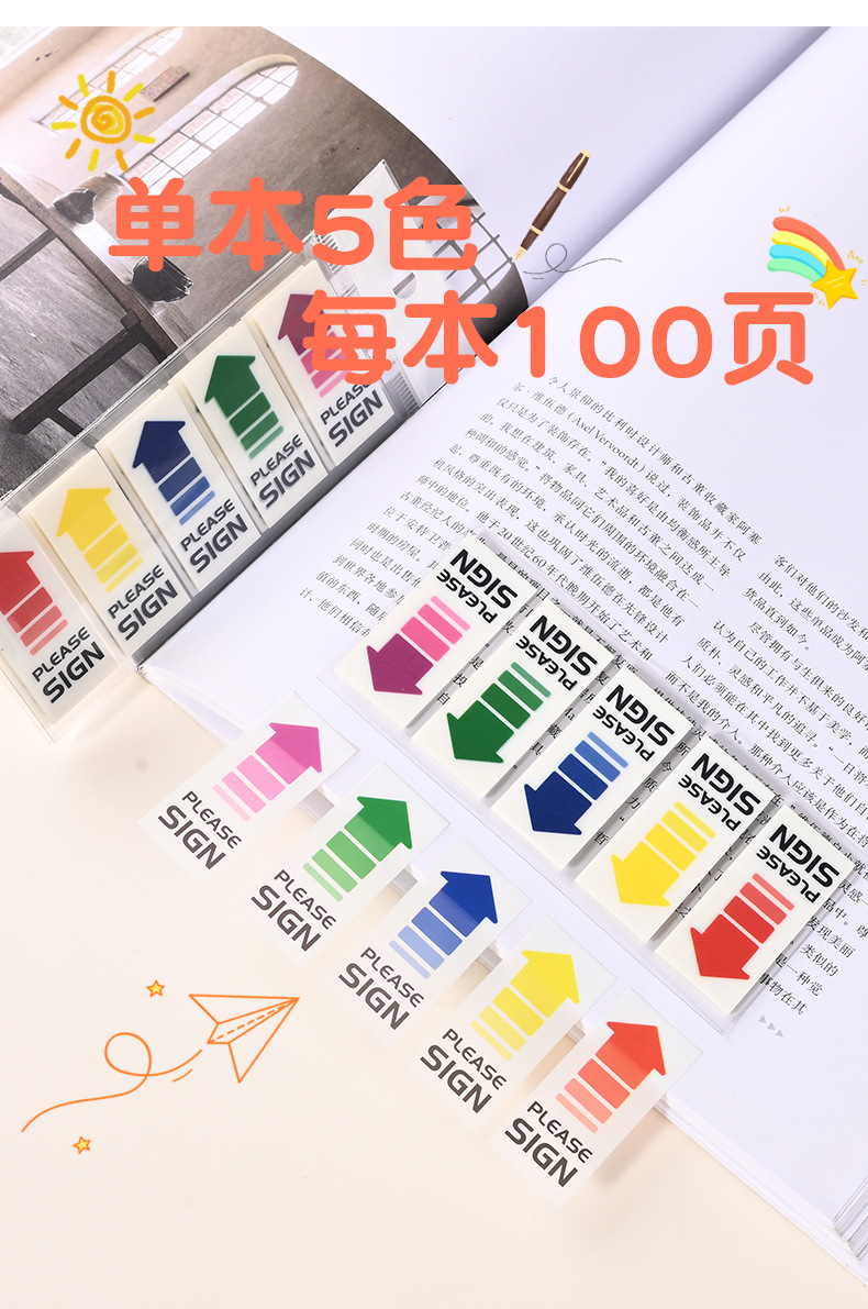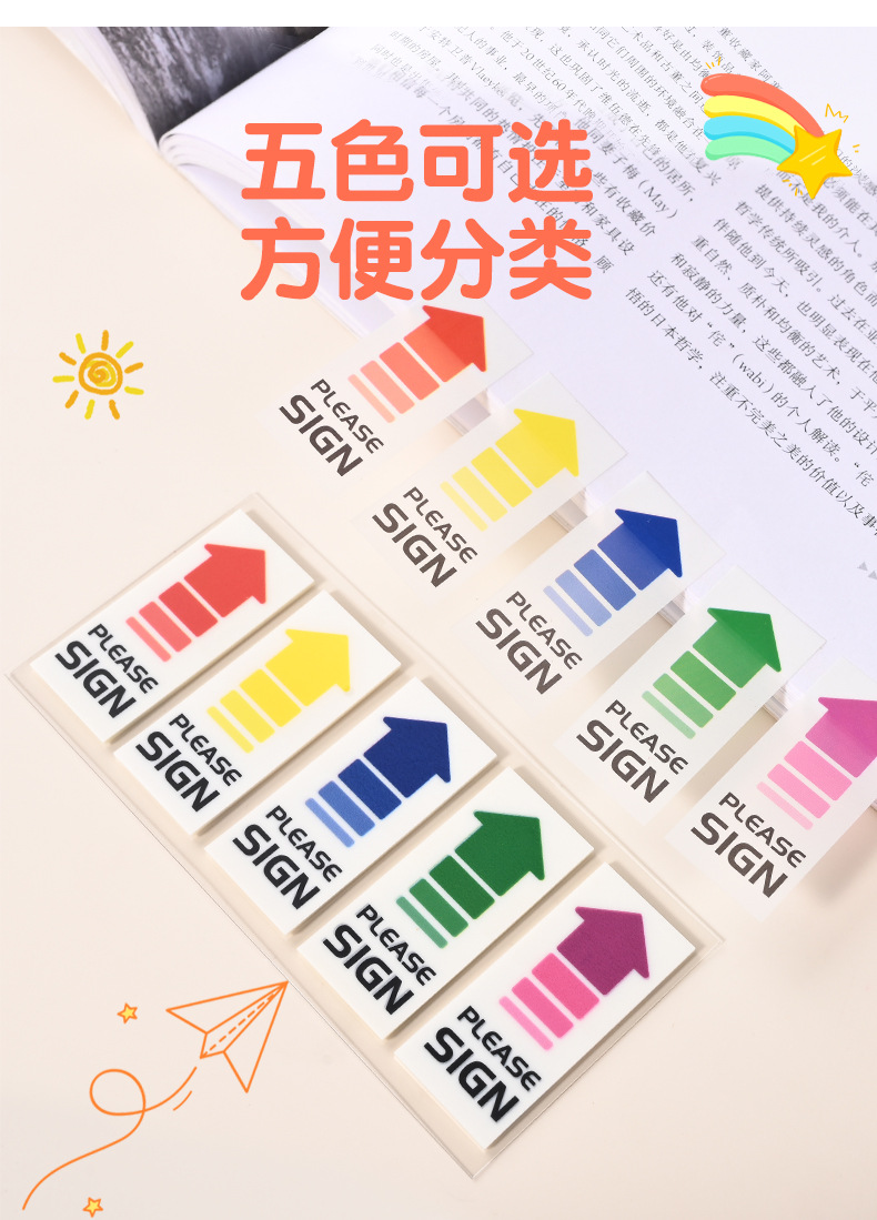 現物付箋シール方向指示付箋矢印平頭インデックス貼りカラーpet付箋ラベル卸売り