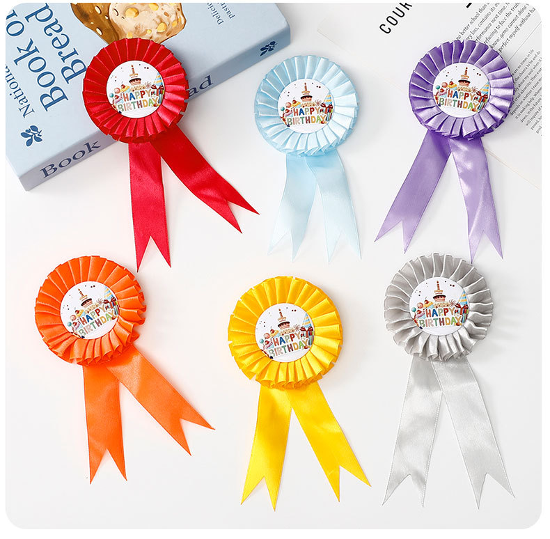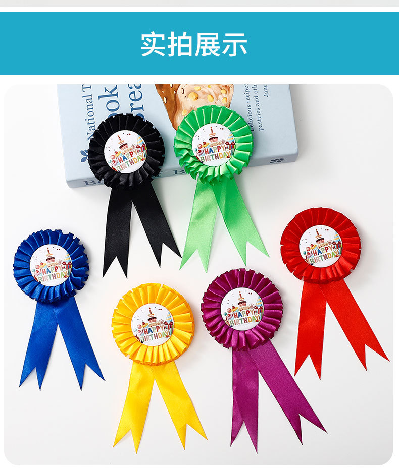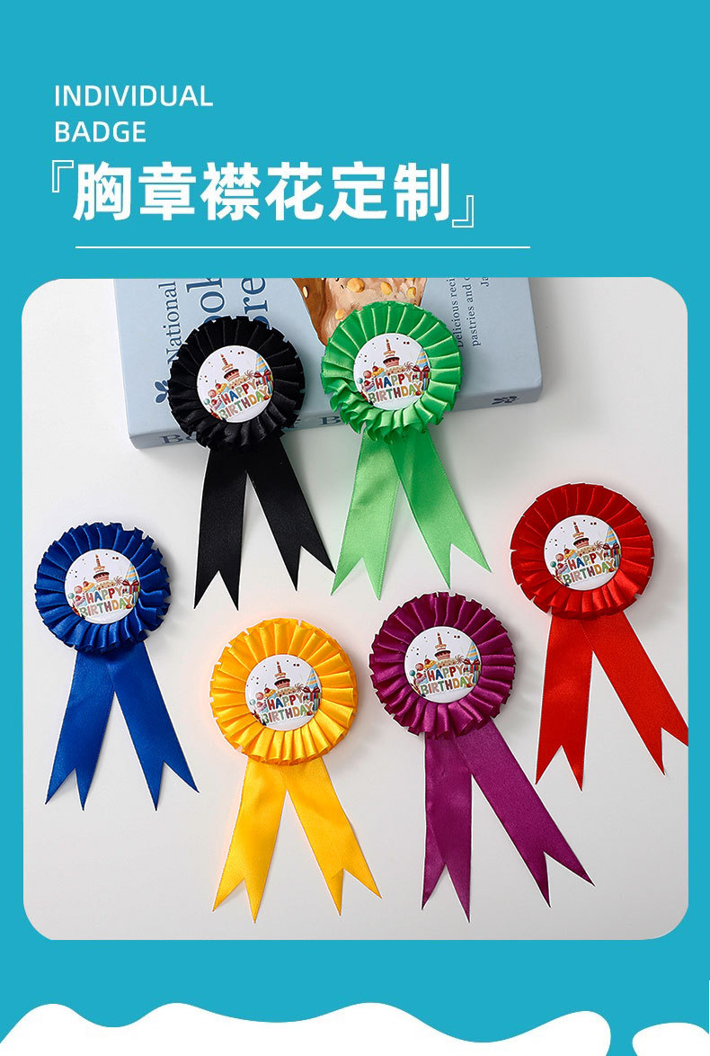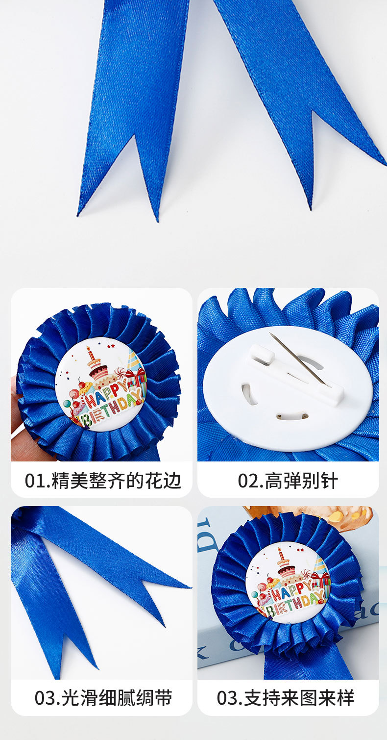跨境专供彩色丝带胸花徽章儿童生日派对节日用品马口铁胸章定制