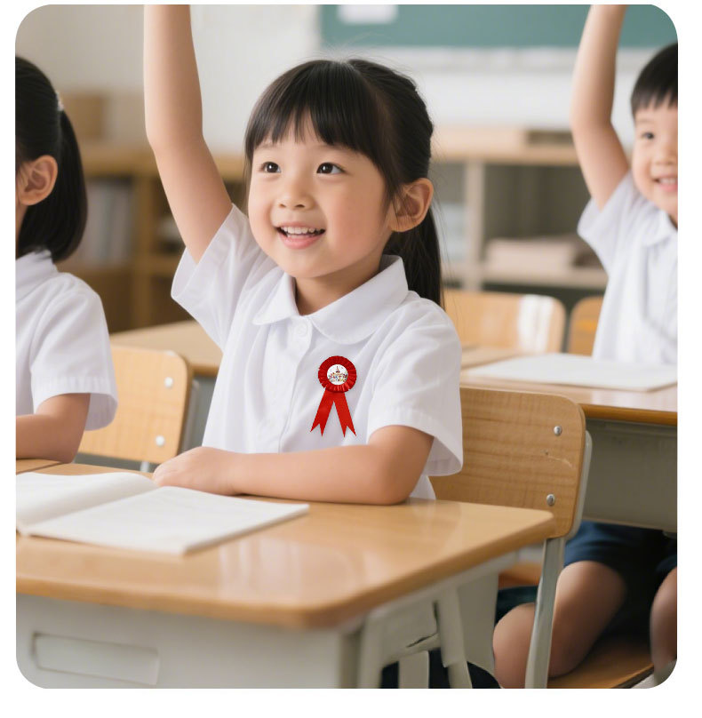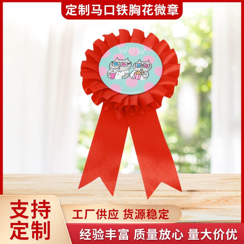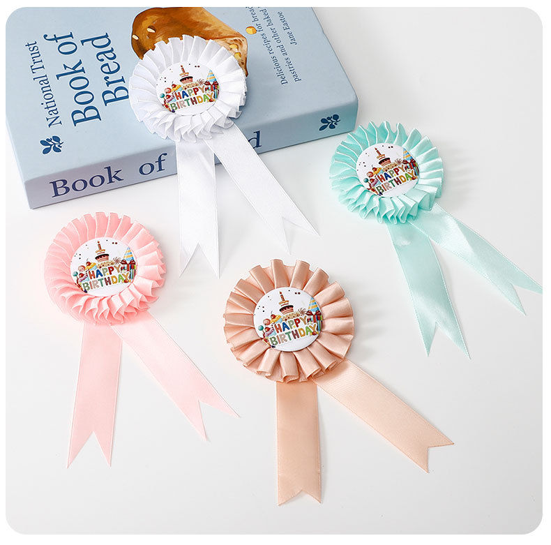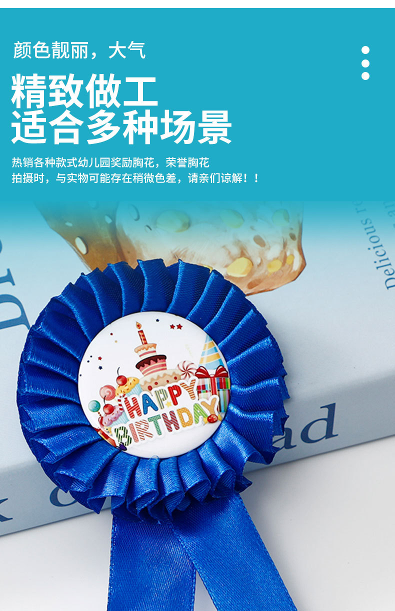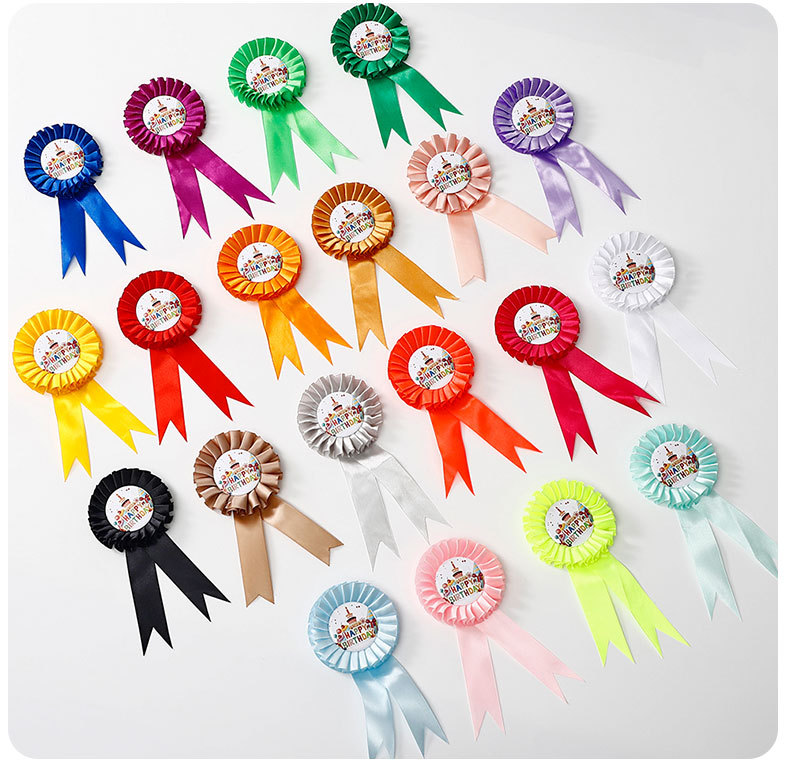 跨境专供彩色丝带胸花徽章儿童生日派对节日用品马口铁胸章定制