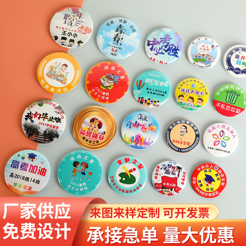 跨境儿童生日派对胸花定制亚马逊彩色花边节日典礼用品马口铁胸章