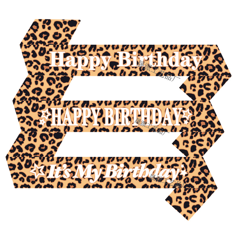 丛林野生动物主题生日派对绶带 happy birthday豹纹印花装饰肩带