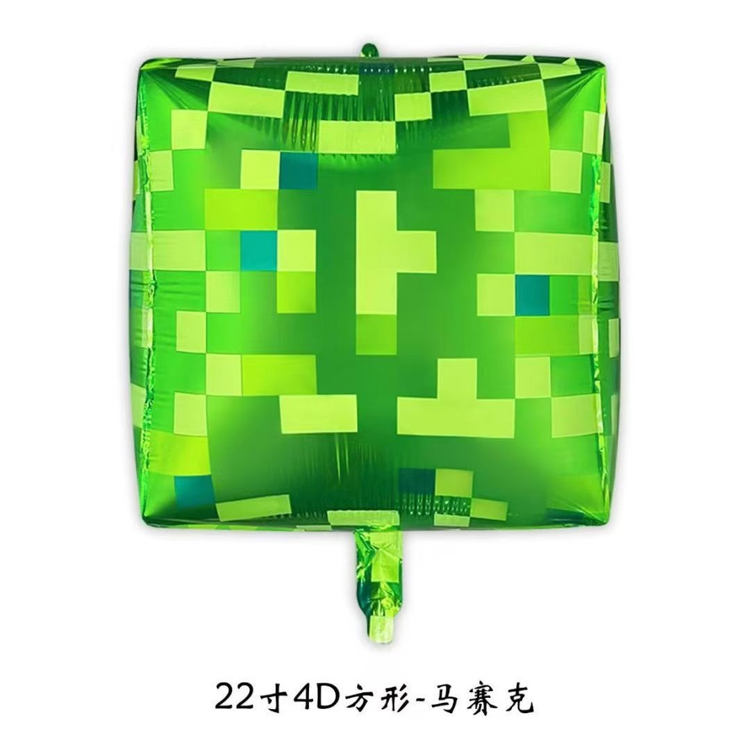 跨境新品我的世界22寸方形4d铝膜气球绿色像素生日布置节日气球